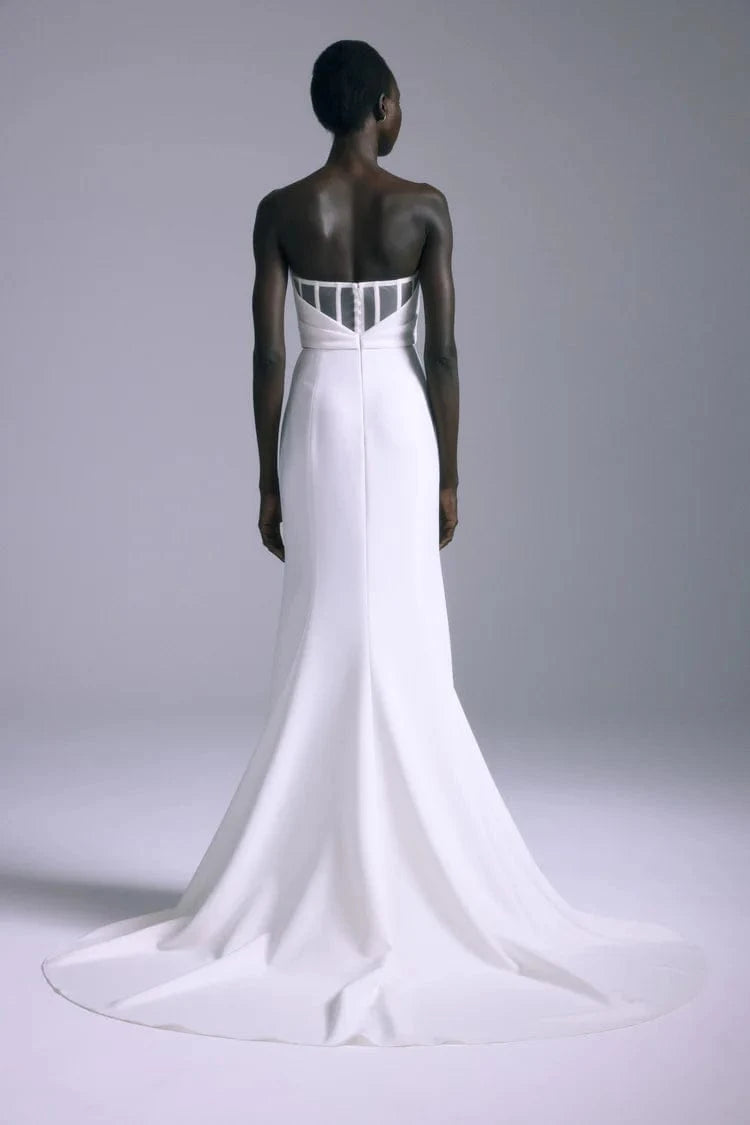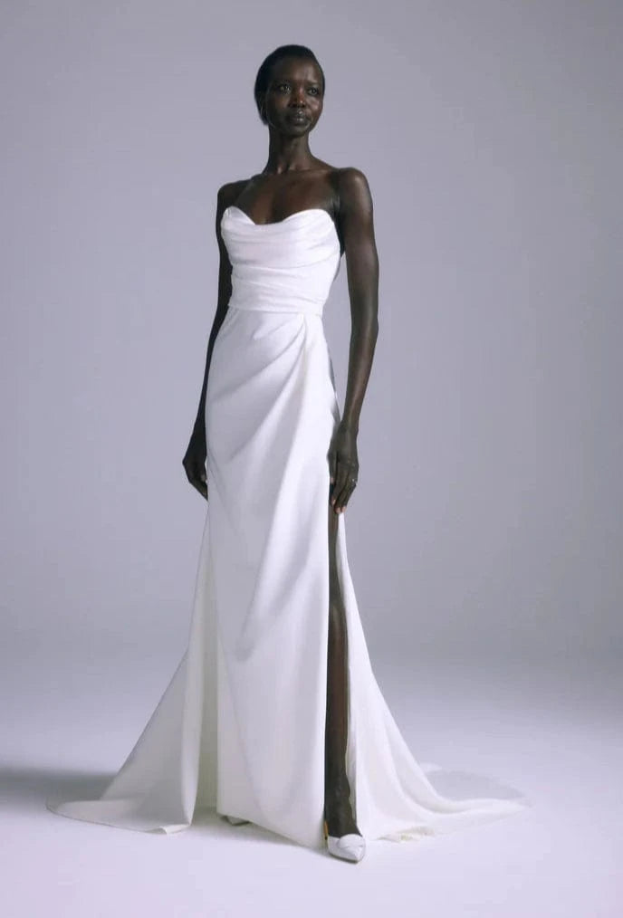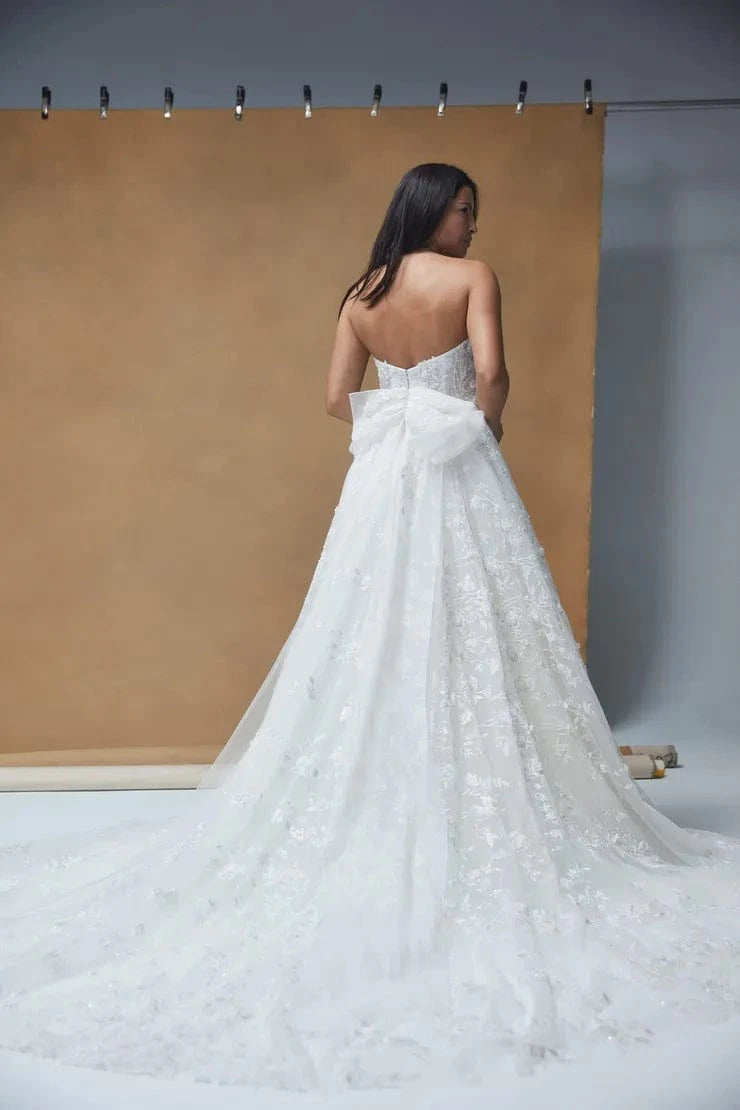 Amsale was founded in New York by the late Amsale Aberra. Aberra's husband, Neil Brown continues the label’s legacy, ensuring that every Amsale wedding dress creation honors its history while moving it forward. Each piece is hand touched by artisans in New York, reinforcing the brand’s reputation for precision and artistry.
