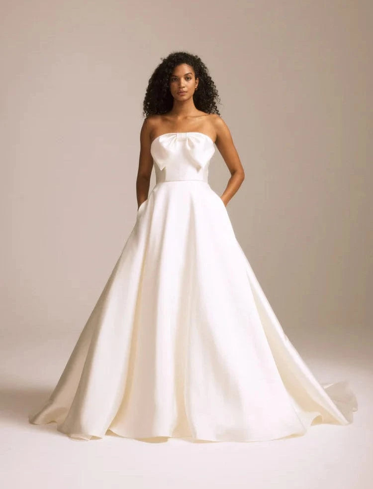 From the New York atelier to our boutiques, Amsale wedding gowns embody a refined vision. The true namesake collection reflects the founder’s modern philosophy—designed for the aisle but wearable beyond a fleeting moment. A wedding dress from the Amsale bridal line is a study in proportion and detail, whether it’s a structured skirt, fluid flare, or minimalist silhouette. Each gown is shaped by master seamstresses using luxurious fabrics sourced for drape, texture, and movement.