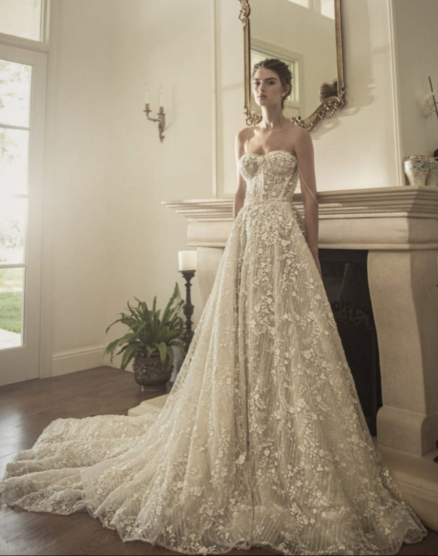 There was a collection of ball gown wedding dresses so magical, they could make any bride's heart skip a beat. With voluminous skirts that billow like clouds and bodices that fit like a dream, these gowns are the epitome of fairytale romance. But don't let their dreamy appearance fool you. Our ball gown wedding dresses are crafted with the modern bride in mind. Think contemporary twists on classic silhouettes, high-quality fabrics that feel as luxurious as they look, and details that'll make you weak in the knees. Get ready to fall head over heels.