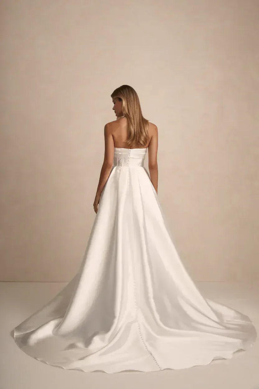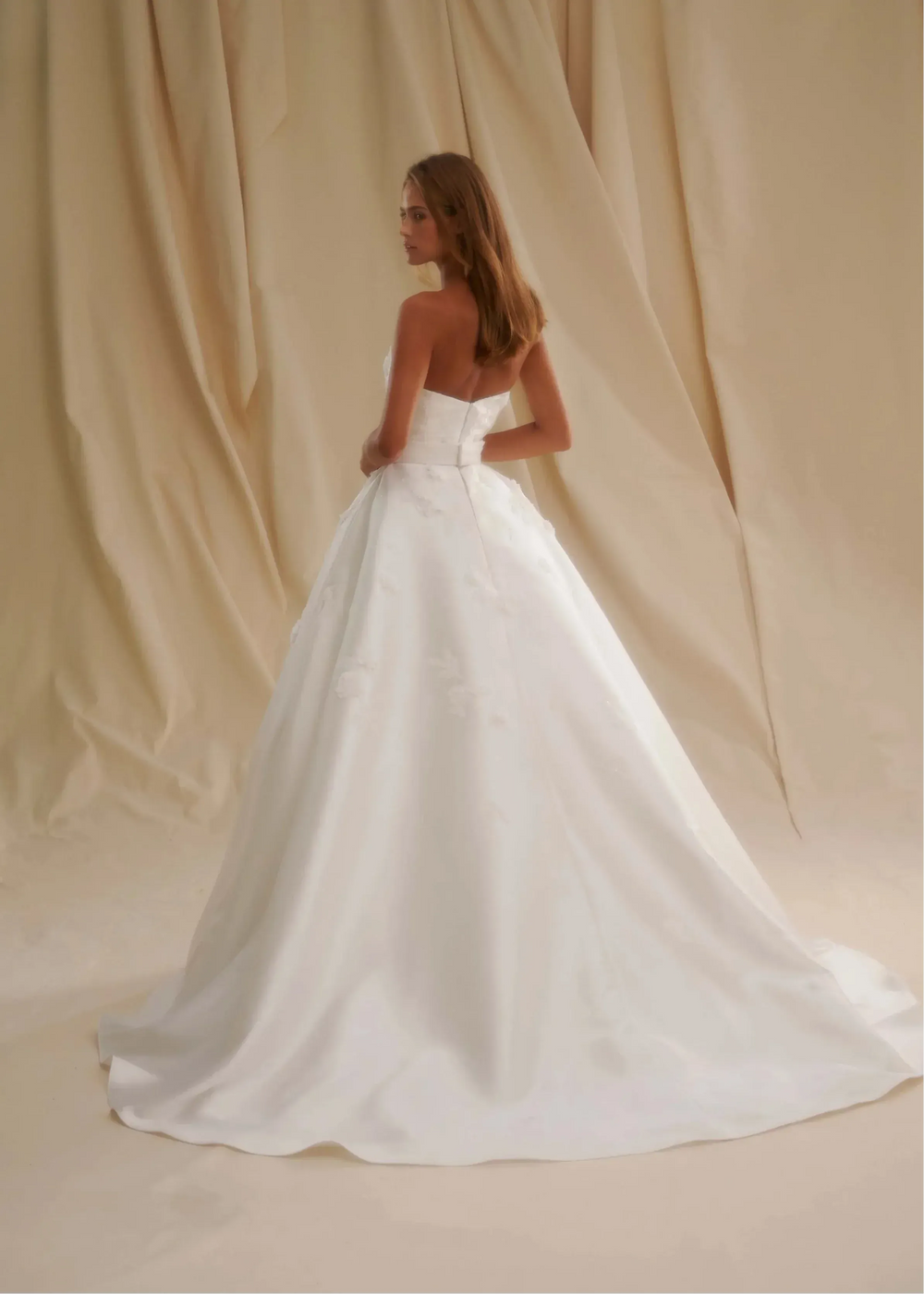 There was a collection of ball gown wedding dresses so magical, they could make any bride's heart skip a beat. With voluminous skirts that billow like clouds and bodices that fit like a dream, these gowns are the epitome of fairytale romance. But don't let their dreamy appearance fool you. Our ball gown wedding dresses are crafted with the modern bride in mind. Think contemporary twists on classic silhouettes, high-quality fabrics that feel as luxurious as they look, and details that'll make you weak in the knees. Get ready to fall head over heels.