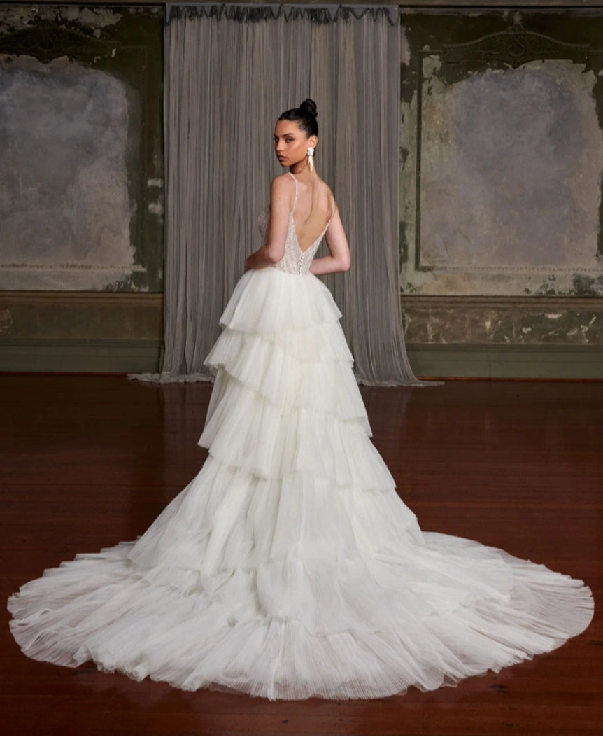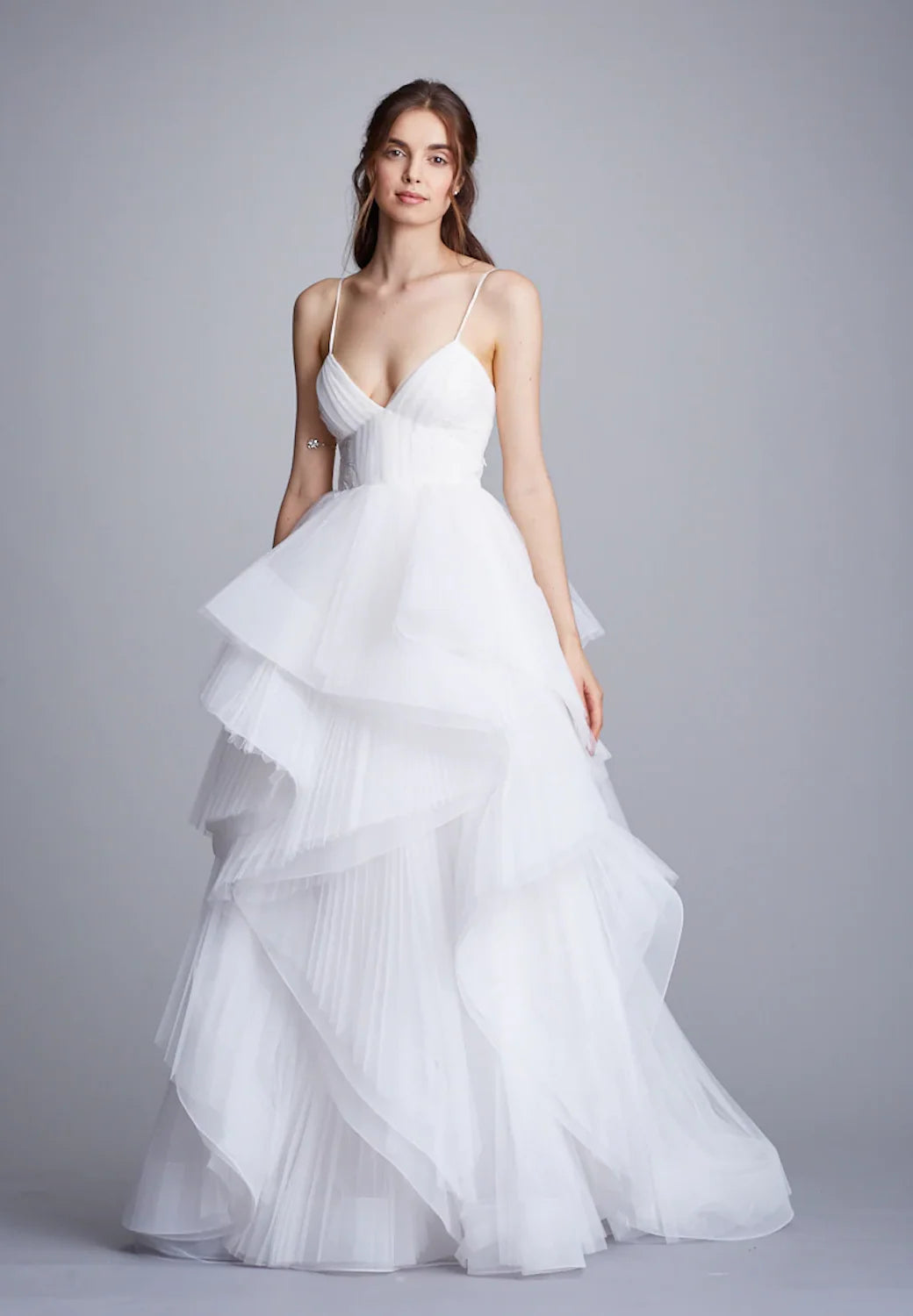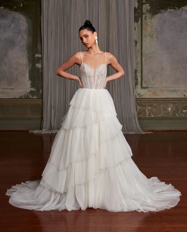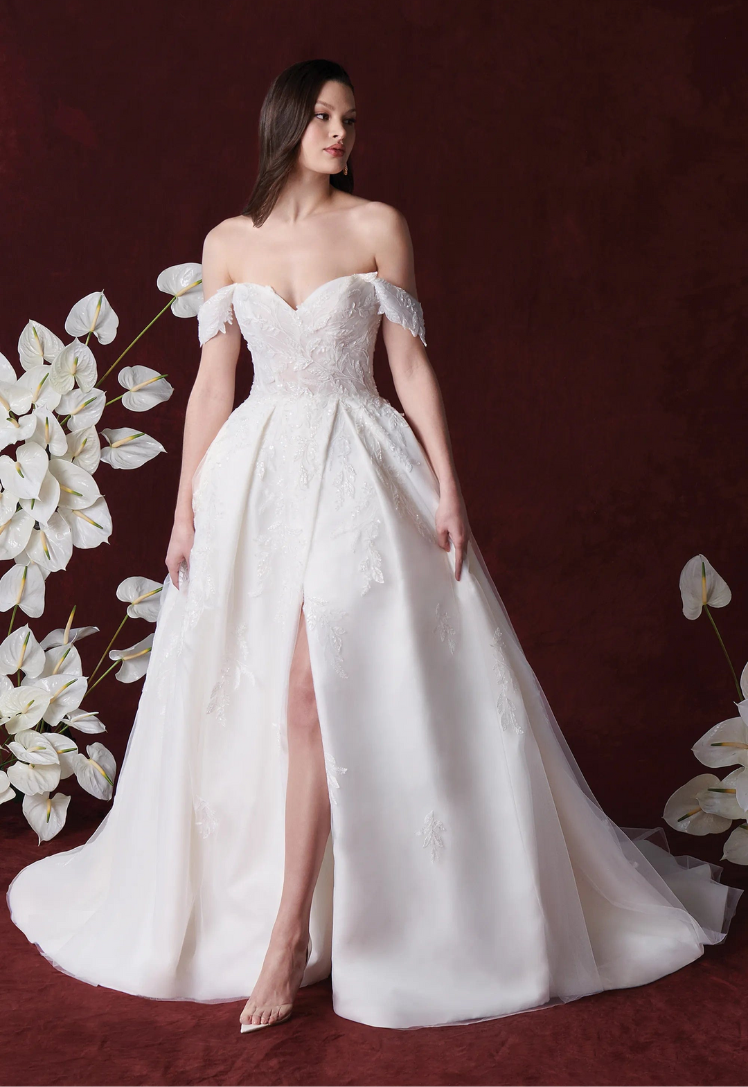There was a collection of ball gown wedding dresses so magical, they could make any bride's heart skip a beat. With voluminous skirts that billow like clouds and bodices that fit like a dream, these gowns are the epitome of fairytale romance. But don't let their dreamy appearance fool you. Our ball gown wedding dresses are crafted with the modern bride in mind. Think contemporary twists on classic silhouettes, high-quality fabrics that feel as luxurious as they look, and details that'll make you weak in the knees. Get ready to fall head over heels.