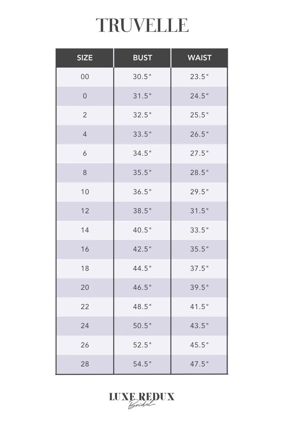 Your bridal gown size differs from your typical dress or pant size! We recommend ordering a sample 2-3 sizes larger than the size you wear in street clothing. For example, if you typically wear a size 12, your bridal size will most likely be a size 16 - 18, depending on the fit + designer. Please note, every designer runs different!