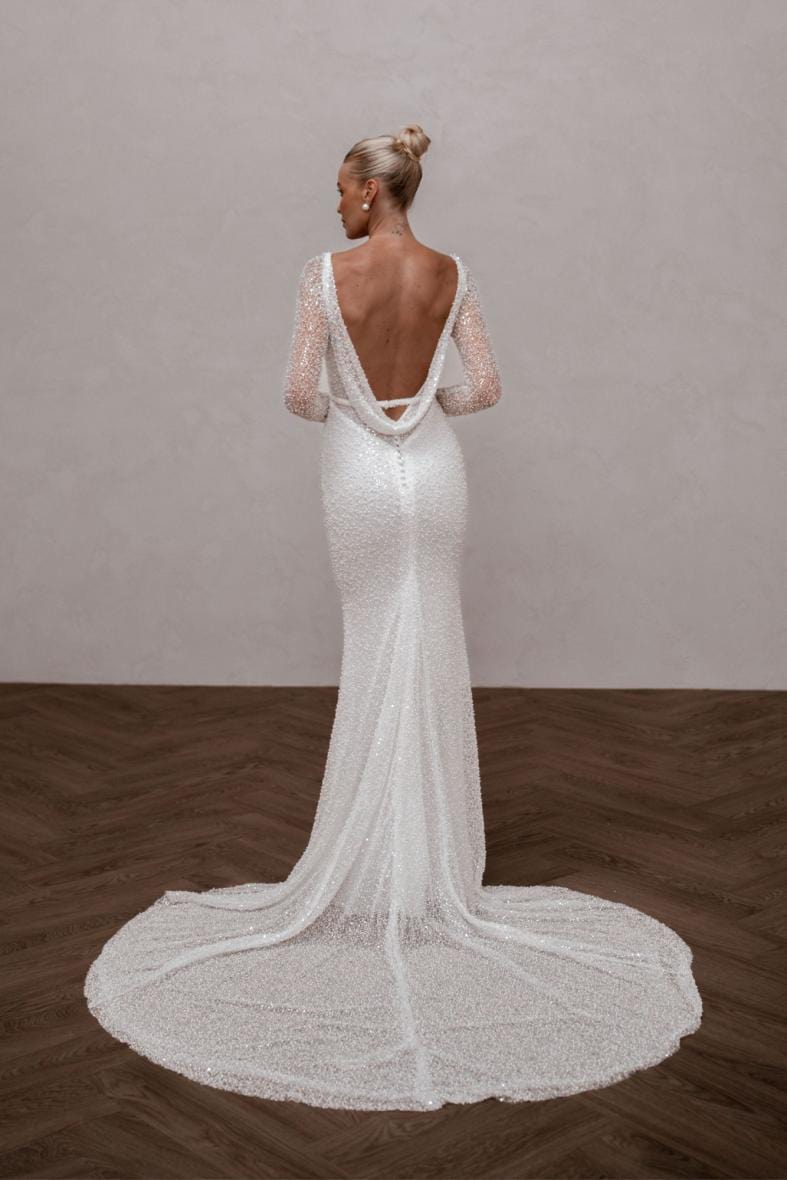 If a gown is too large, have no fear! You can alter most gowns down 2-3 sizes without damaging the integrity of the dress.