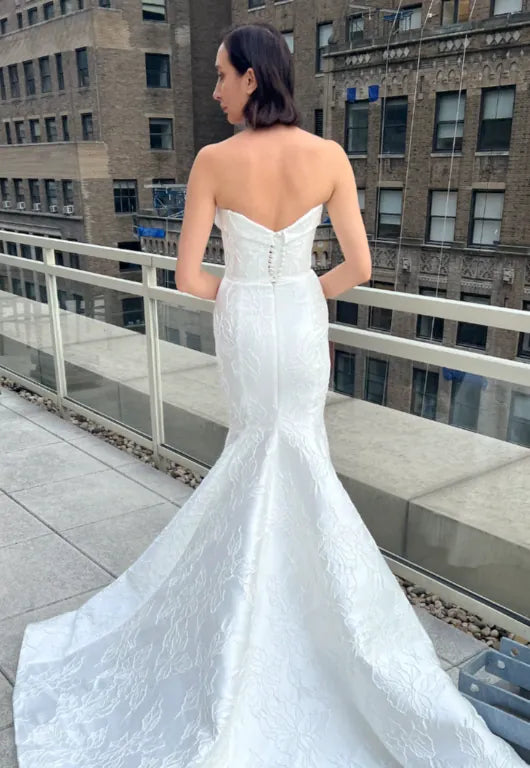 Your bridal gown size differs from your typical dress or pant size! We recommend ordering a sample 2-3 sizes larger than the size you wear in street clothing. For example, if you typically wear a size 12, your bridal size will most likely be a size 16 - 18, depending on the fit + designer. Please note, every designer runs different!