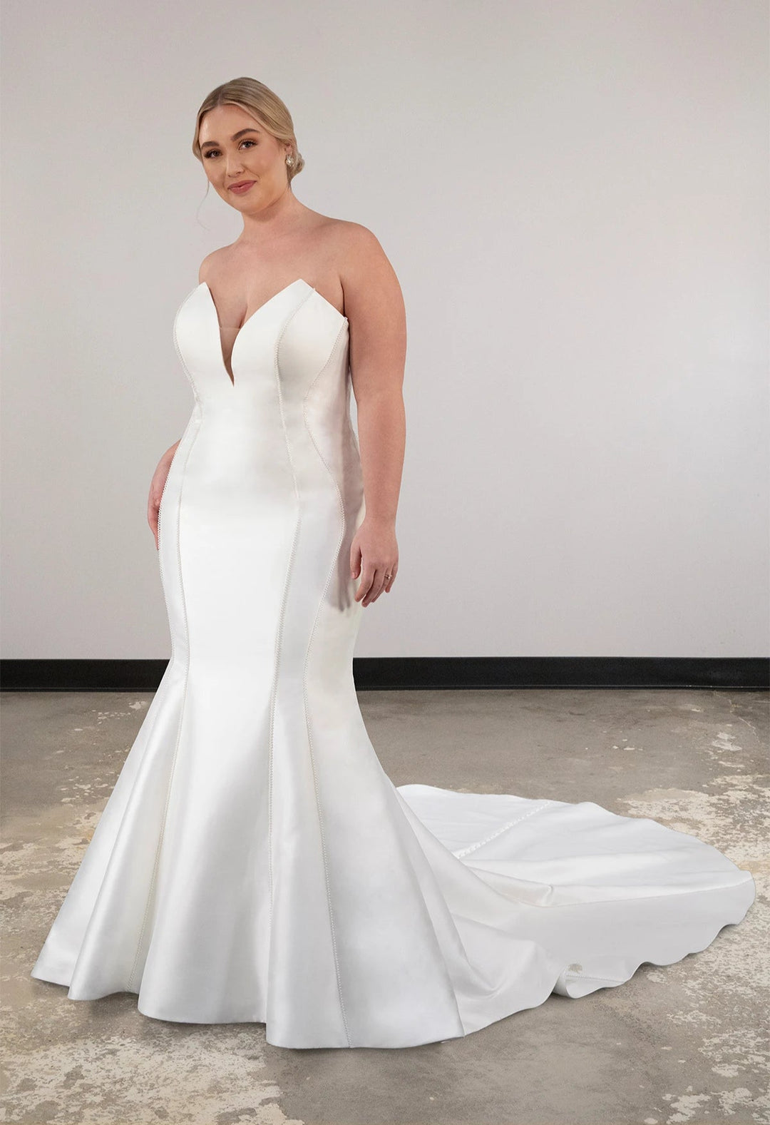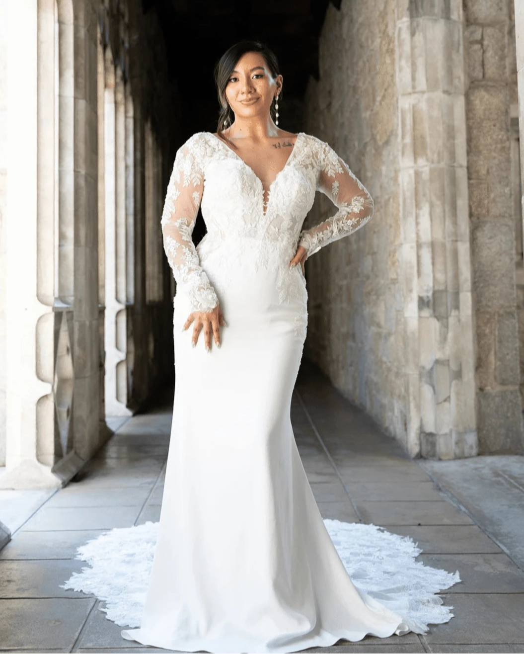 Essense of Australia Bridal has a silhouette for every bride’s vision, from elegant ball gowns and sleek fit-and-flare styles to romantic A-lines and dramatic mermaids. Choose from gowns with princess cuts, glamorous long sleeves, delicate straps, off-the-shoulder designs, and luxurious fabrics like chiffon and satin. Discover intricate back details, plunging necklines, and delicate illusion accents that add unforgettable drama. Thanks to the brand’s EveryBody/EveryBride commitment, every gown, no matter the size, features the same exquisite details and high-quality construction, so every bride feels beautiful and confident.