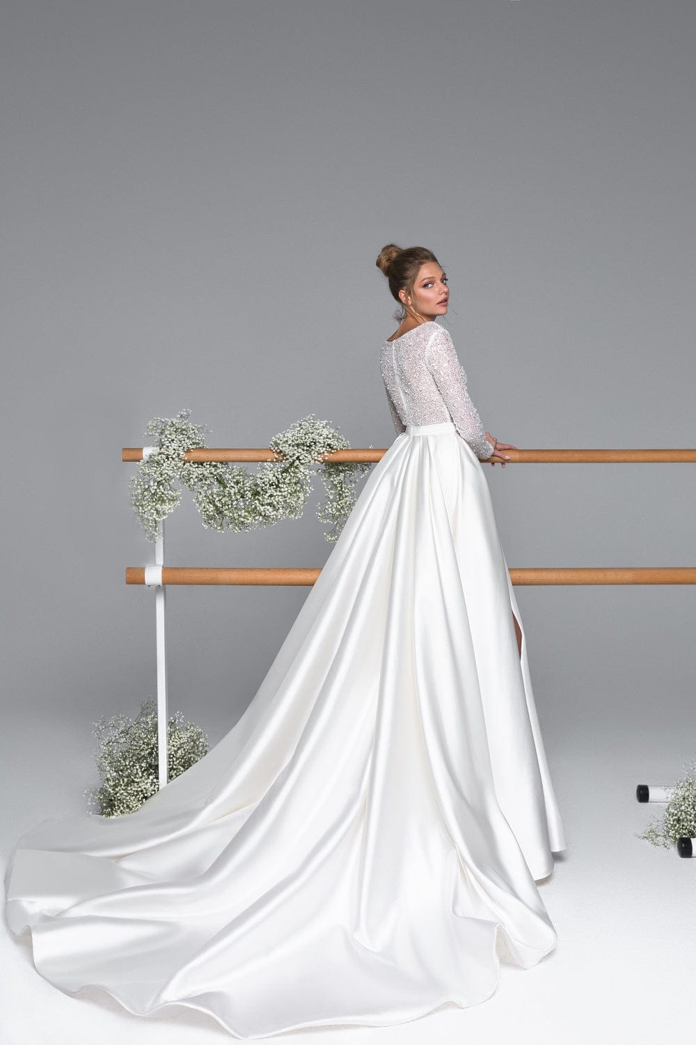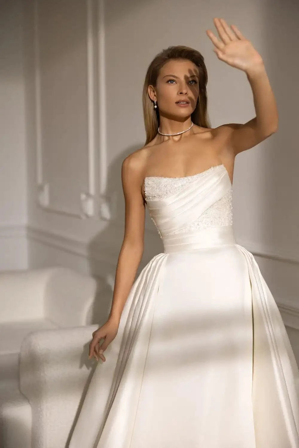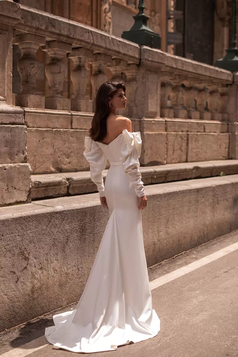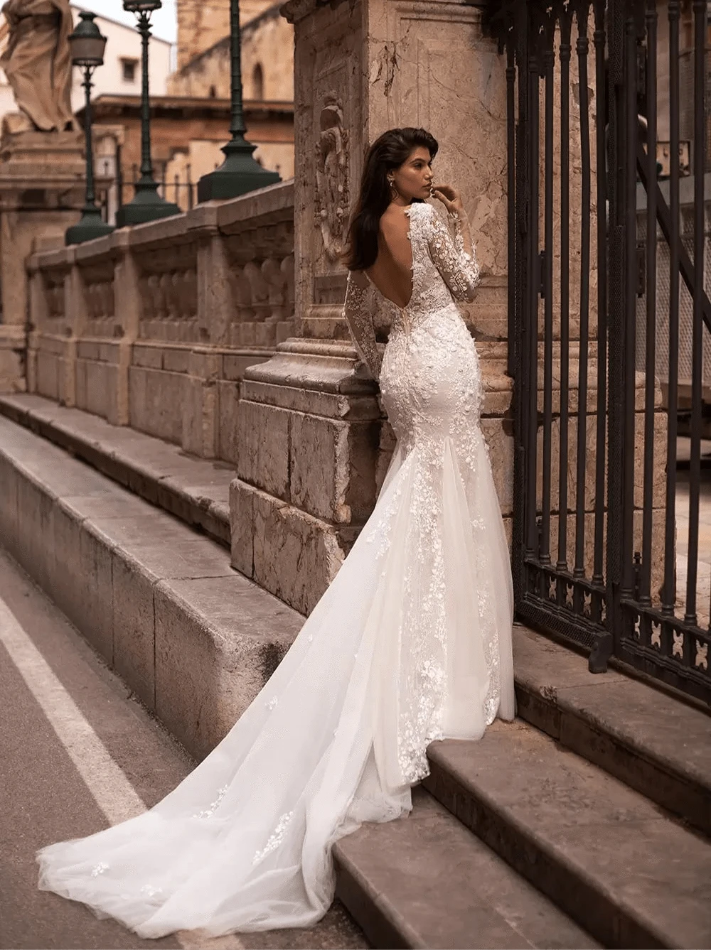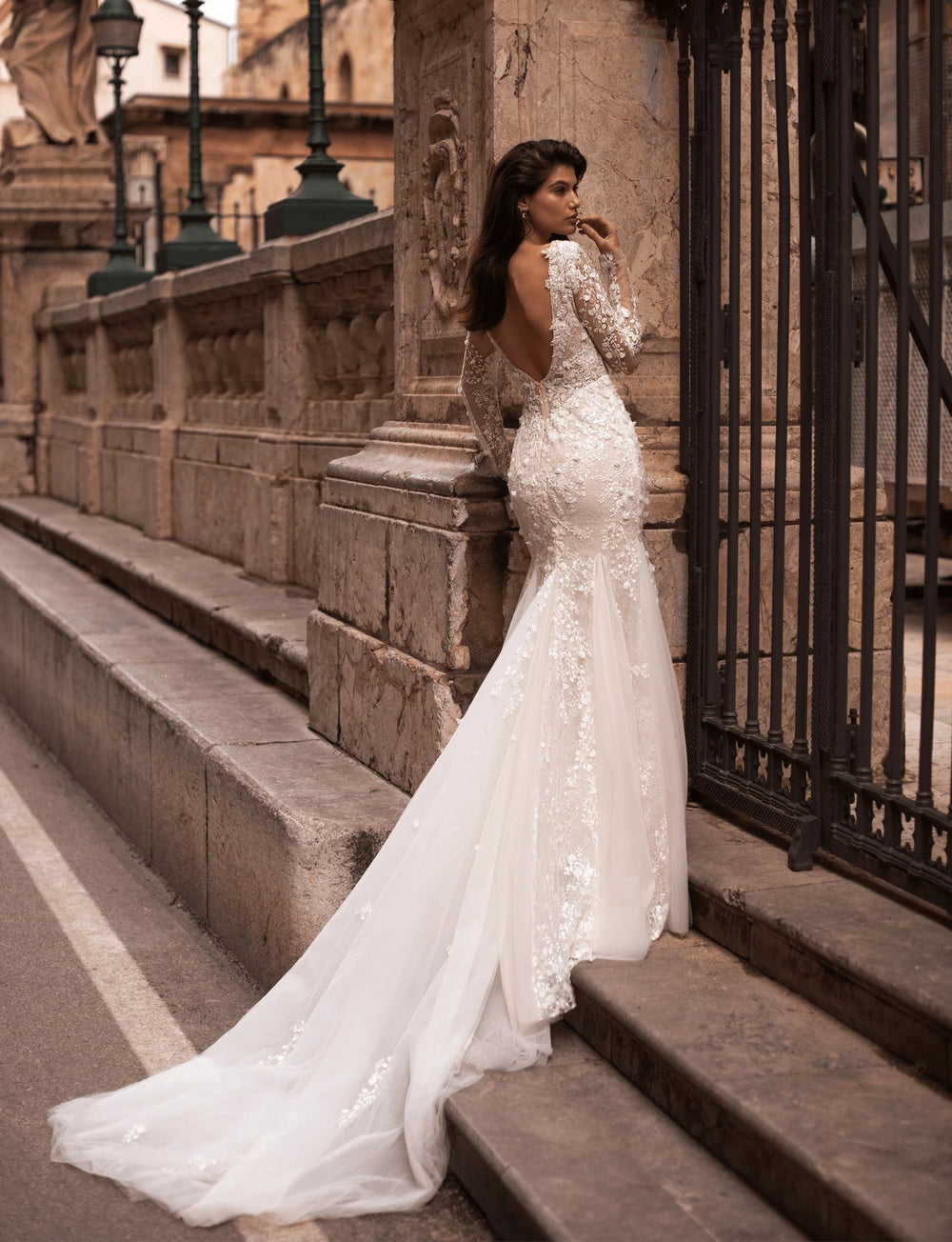 The Eva Lendel bride is confident, modern, and never afraid to stand out. They want a wedding dress that matches their personality. Whether that's dramatic cathedral trains with contemporary necklines or sleek minimalist gowns with unexpected sensuality, these designs capture the complexity of the modern bride.