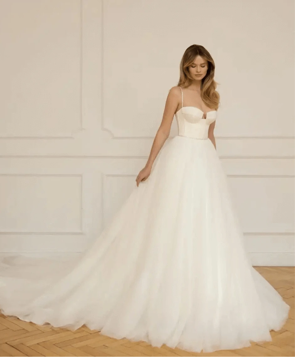 Eva Lendel wedding dresses are for the bride who writes their own rules. This brand is known for unique designs that blend contemporary details with classic romance. Each Eva Lendel gown features clean lines, unexpected textures, and silhouettes that feel both fresh and timeless.