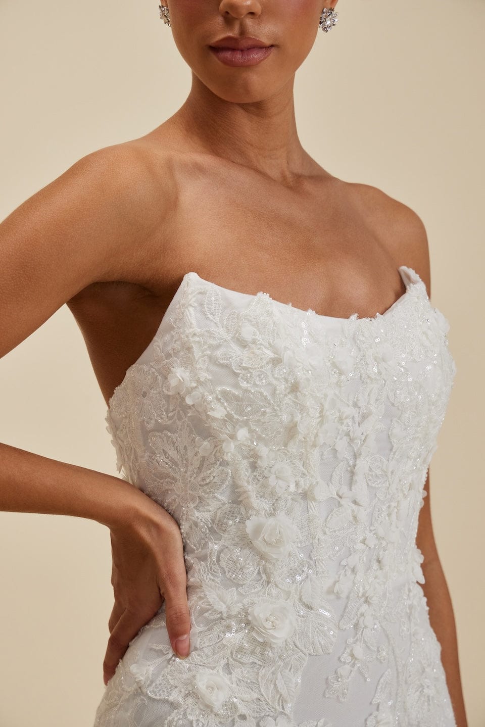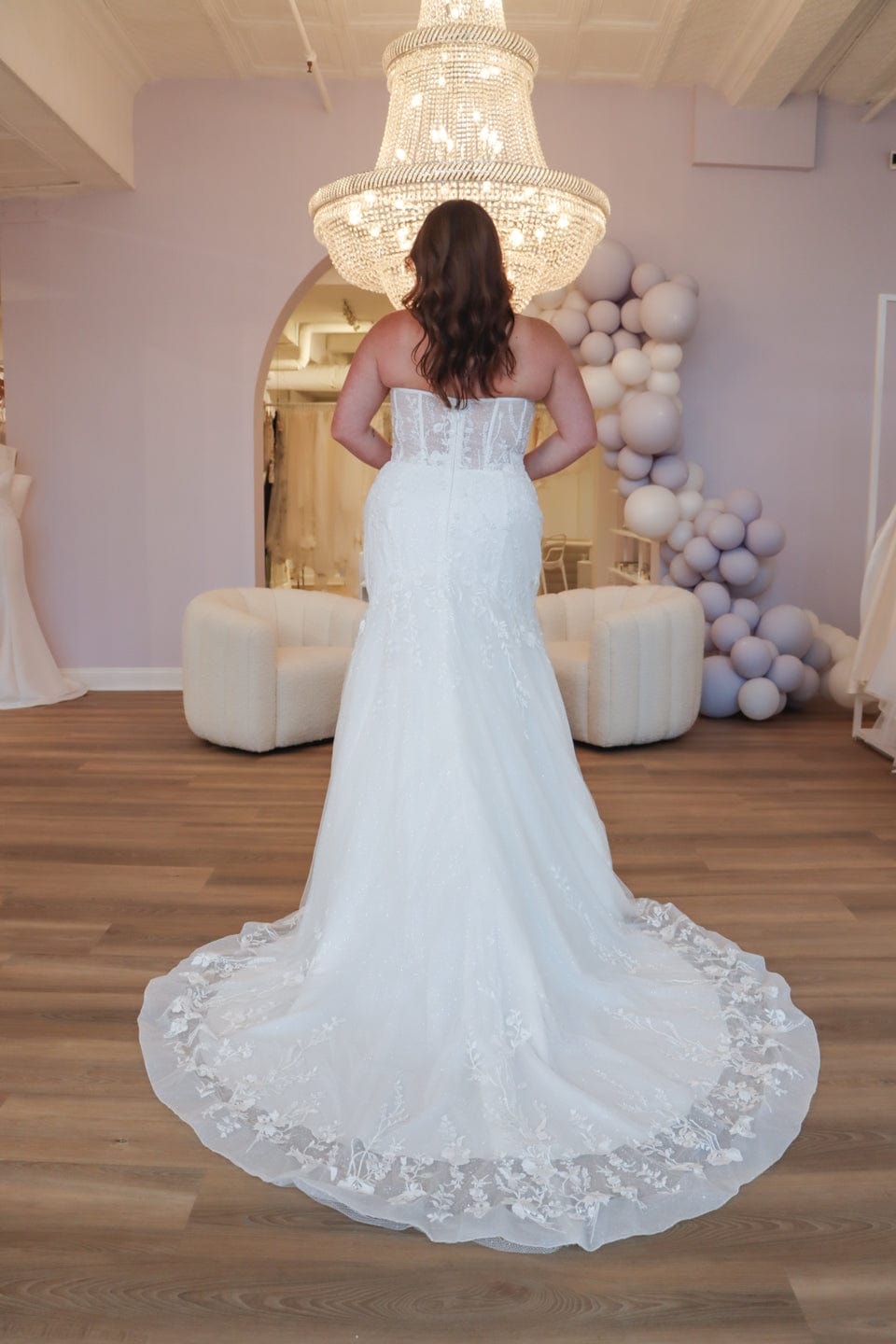 Don't forget the finishing touches! We offer a curated collection of accessories such as belts, capes, earring, furs, headpieces, and veils, to complement your Fit and Flare gown.