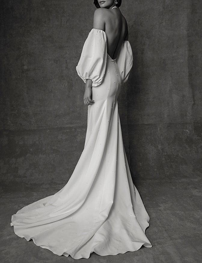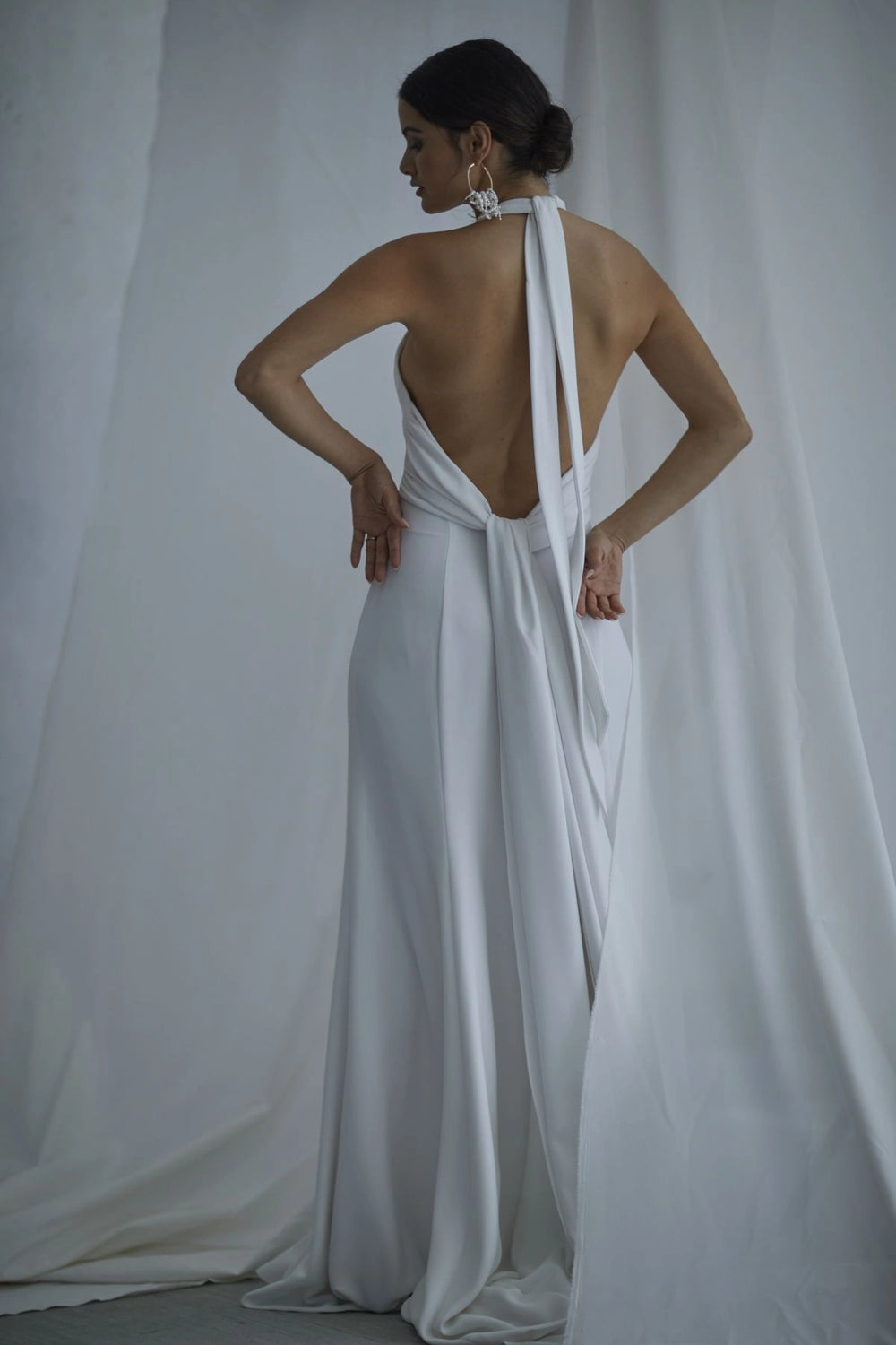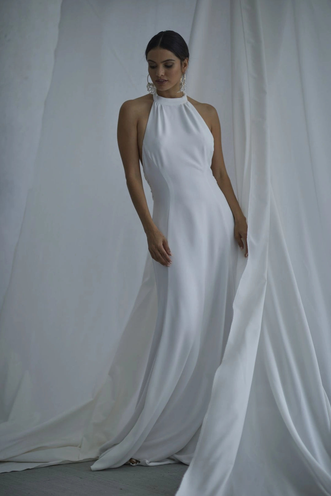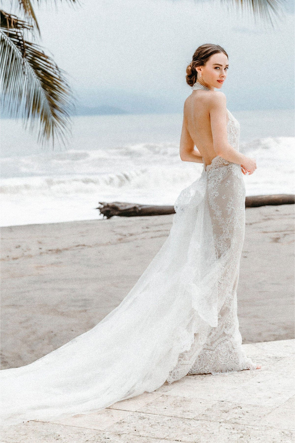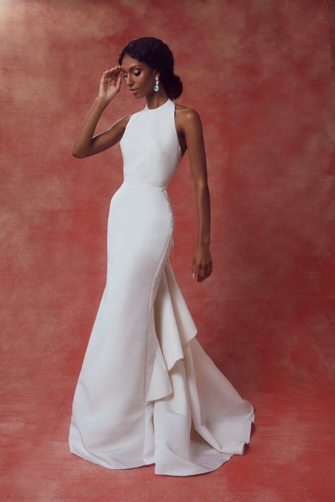 A halter neck wedding dress does what strapless cannot; it wraps around your neck to lift and support while creating drama at the back. Halter wedding gowns highlight your face and add structure without sleeves. Skip the necklace. Your collarbones become the jewelry.