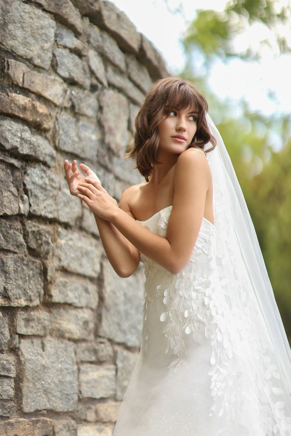 We offer a curated collection of accessories such as belts, capes, earring, furs, headpieces, and veils, to complement your Lazaro wedding dress.