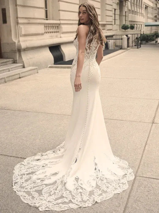 The magic of a Maggie Sottero wedding dress lies in its structure. The brand's legendary corsetry and inner construction create a flawless silhouette, giving you confidence from the inside out. Each gown features luminous satins, intricate hand-placed lace, and delicate beadwork that catches the light perfectly.