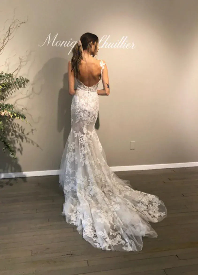 Consider the Neckline: The neckline of your mermaid wedding dress can make a world of difference. Whether you opt for a strapless design, a plunging V neckline, or elegant long sleeves, choose a neckline that complements your face shape and personal style. A plunging V neckline can add a touch of drama, while a strapless dress can highlight your shoulders beautifully.