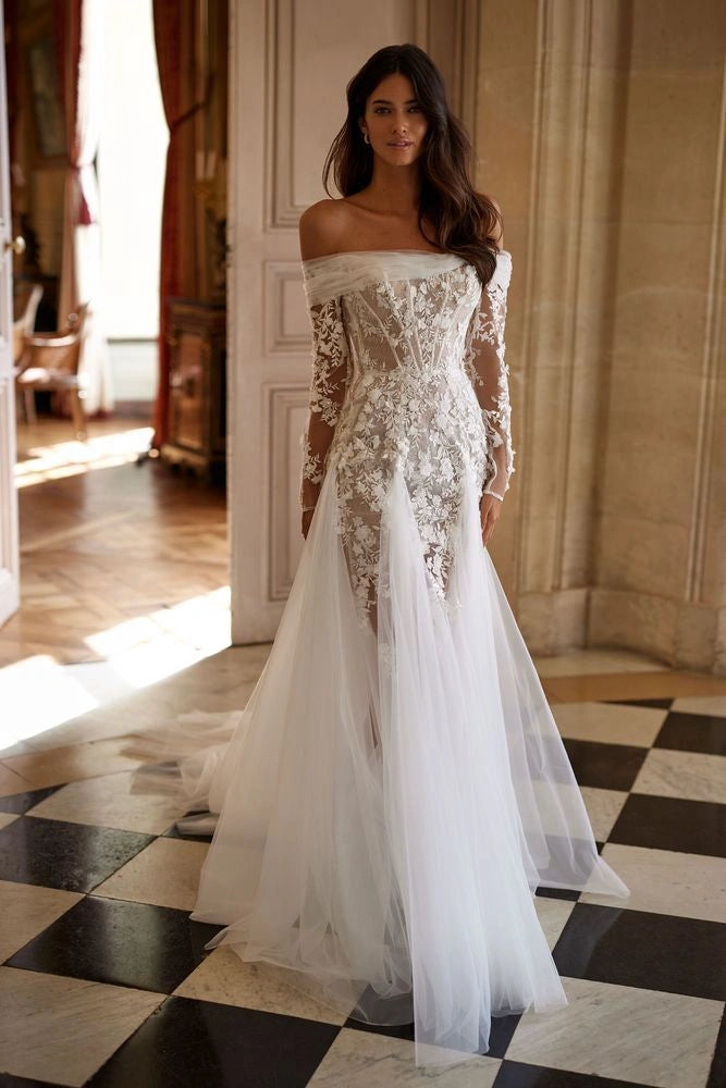 Rooted in European couture tradition, Milla Nova wedding gowns carry a presence worldwide. From the atelier to our boutiques, each design reflects years of experience and inspiration drawn from global bridal trends. The Milla Nova bridal collection showcases a range of styles, from minimalist modern dresses to intricate lacework ball gowns, crafted to flatter diverse body types.