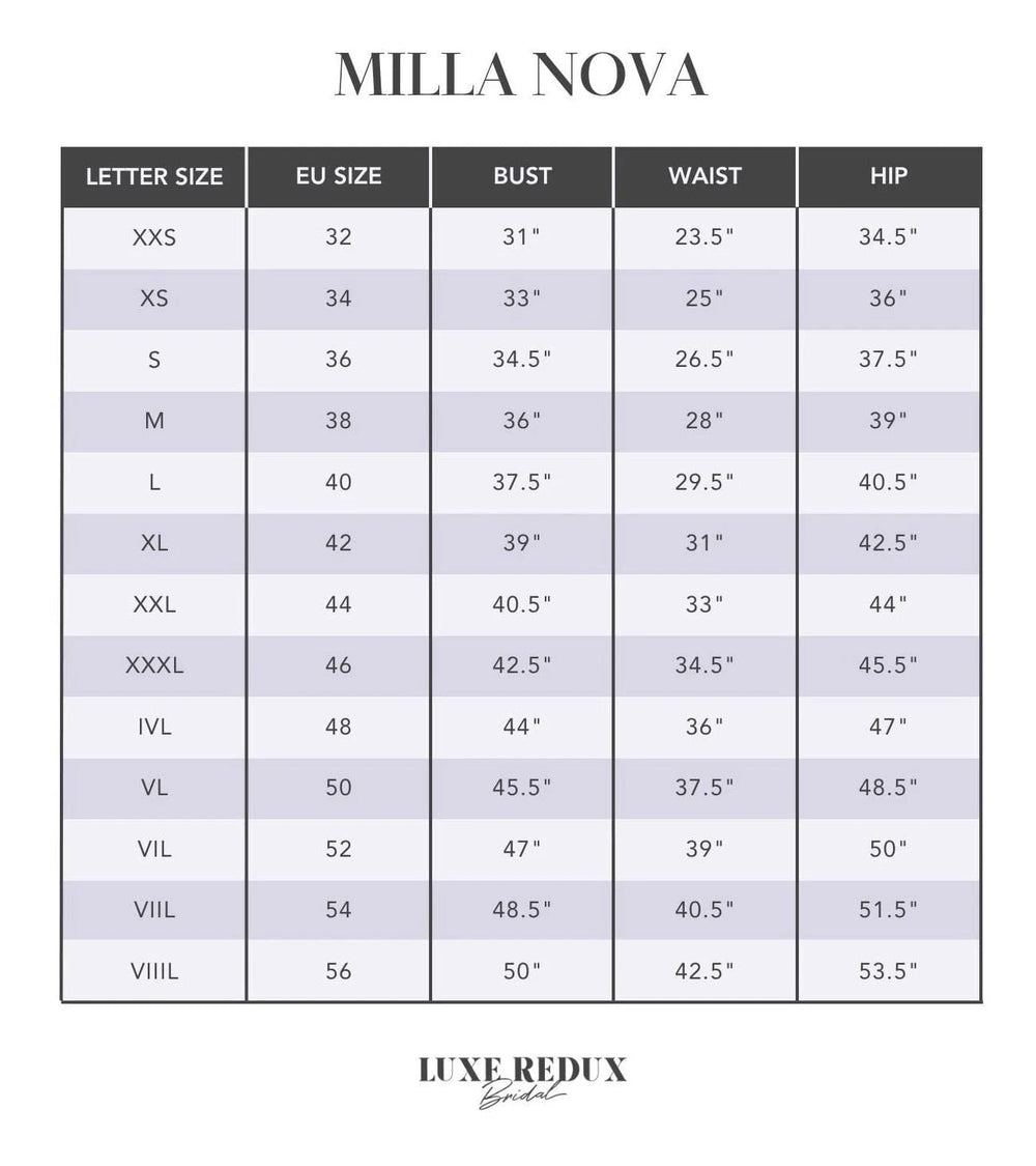 Milla Nova was founded on a passion for detail and sophistication. Master seamstresses ensure all wedding dresses meet exacting standards of construction and comfort. Each Milla Nova bridal gown balances traditional couture techniques with contemporary sensibility. The result - wedding dresses that honor the brand’s heritage while embracing modern bridal needs.