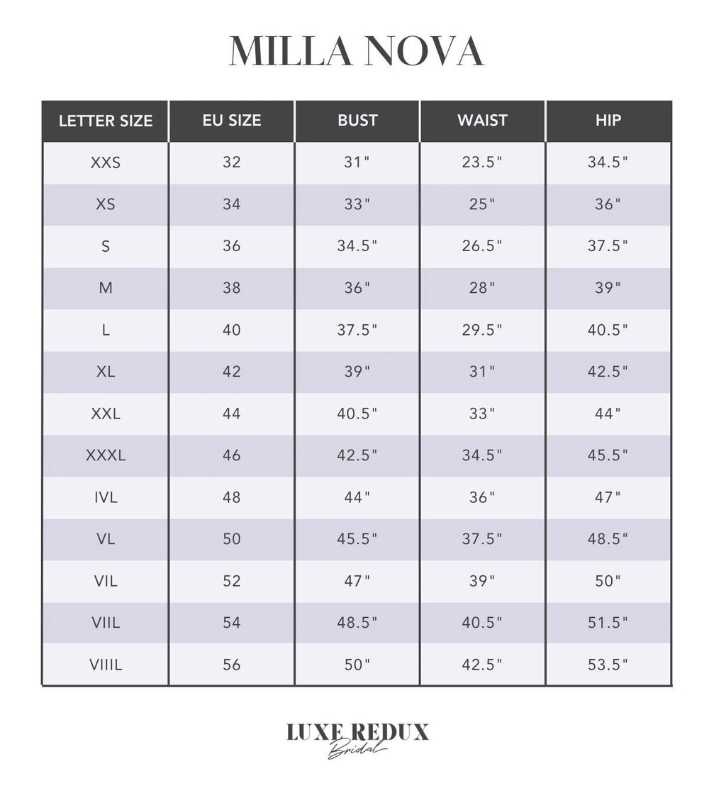 For personalized styling advice or sizing consultations, make an appointment at one of our Luxe Redux boutiques. Experience the Milla Nova bridal difference in person and explore our full collection. Whether your inspiration lies in sleek modern silhouettes or romantic lace designs, our team will help you find your dream wedding dress with confidence and ease.