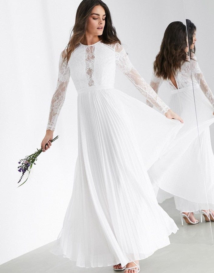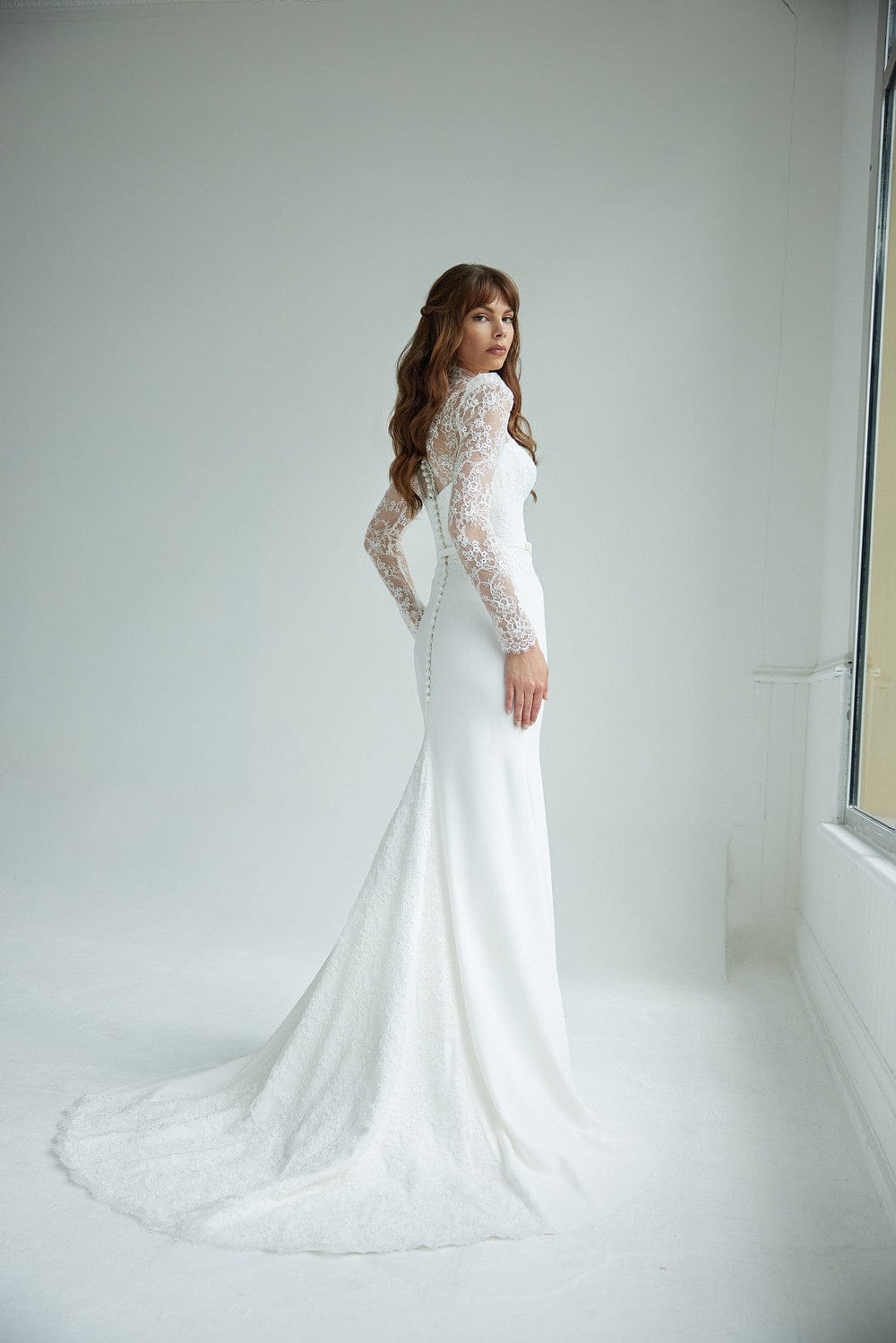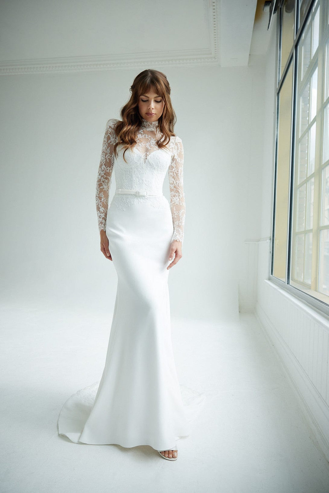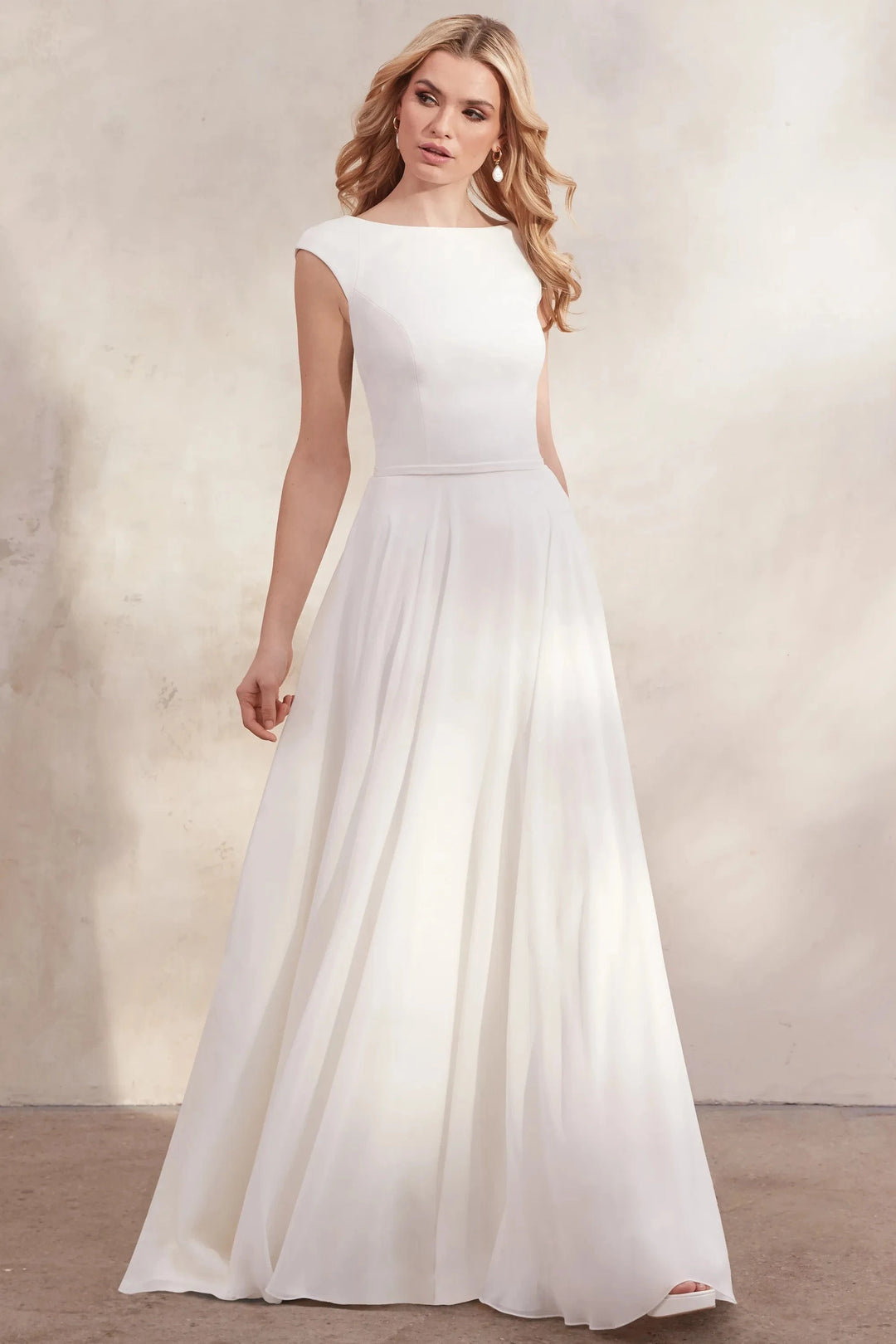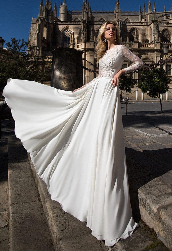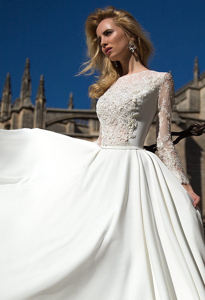 Are you ready to find a wedding dress that's modest yet stylish? Check out our collection of modest wedding gowns that blend coverage with a dash of whimsy. You’ll find here everything from simple modest wedding dresses with a little bit of lace and sparkle, to gowns with long sleeves and a flowing skirt that's perfect for twirling.