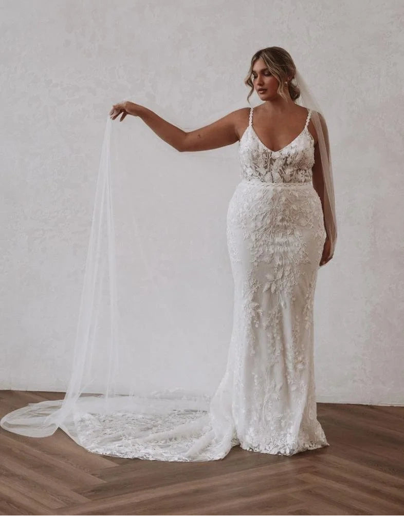 Don't forget to complete your look with our curated collection of accessories, including belts, capes, earrings, furs, headpieces, and veils. Each piece is carefully selected to complement our plus size wedding dresses and add a touch of elegance to your overall look.