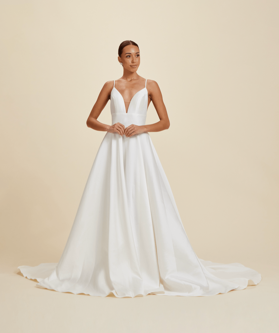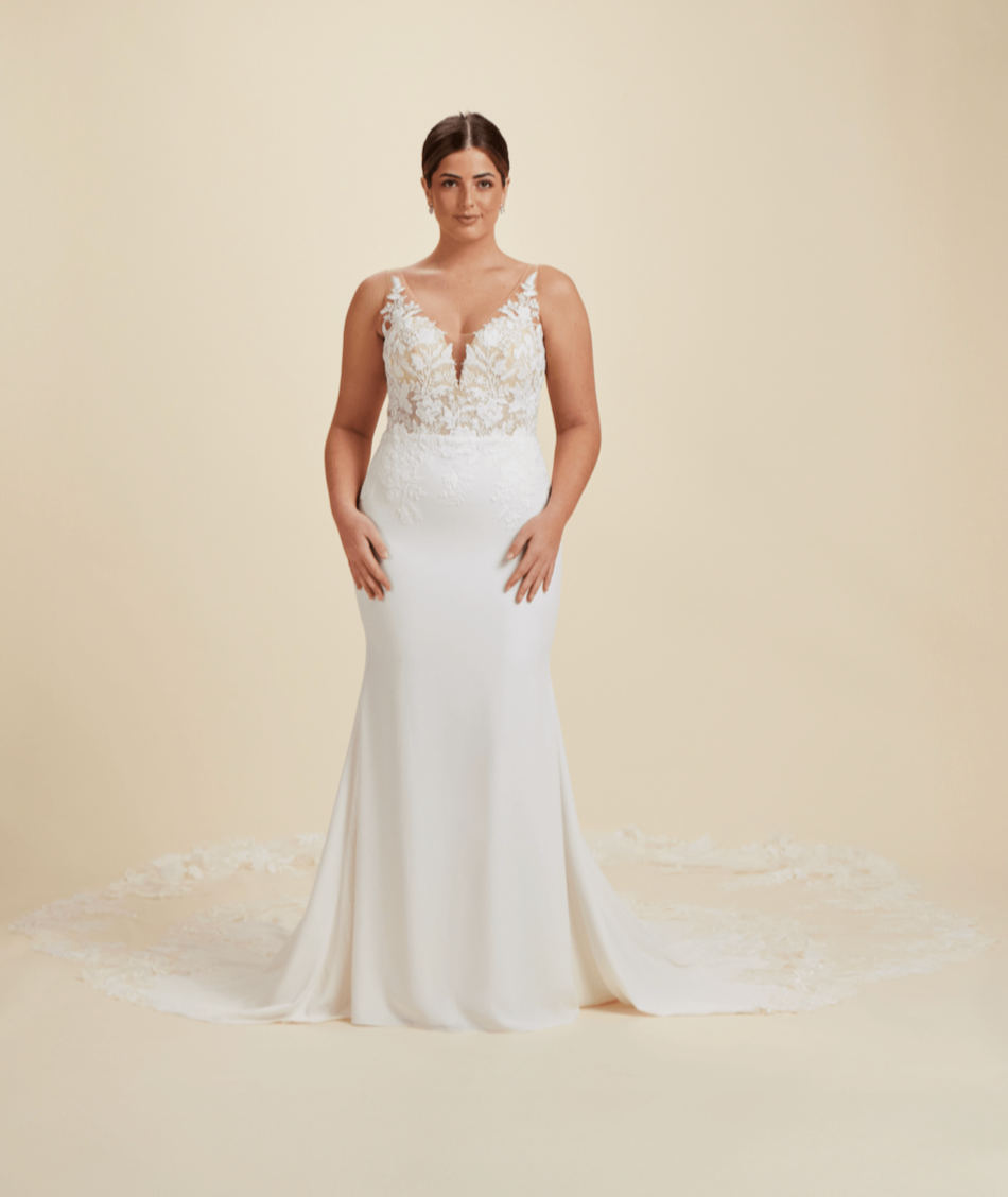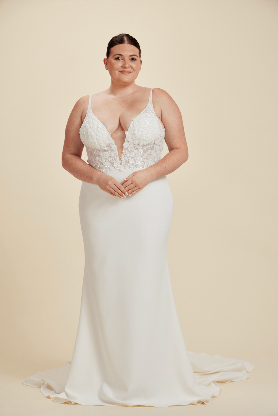Explore our plus size wedding gowns online or visit one of our boutique locations. With easy ordering and try-on options, your dream wedding dress is just a click away!
