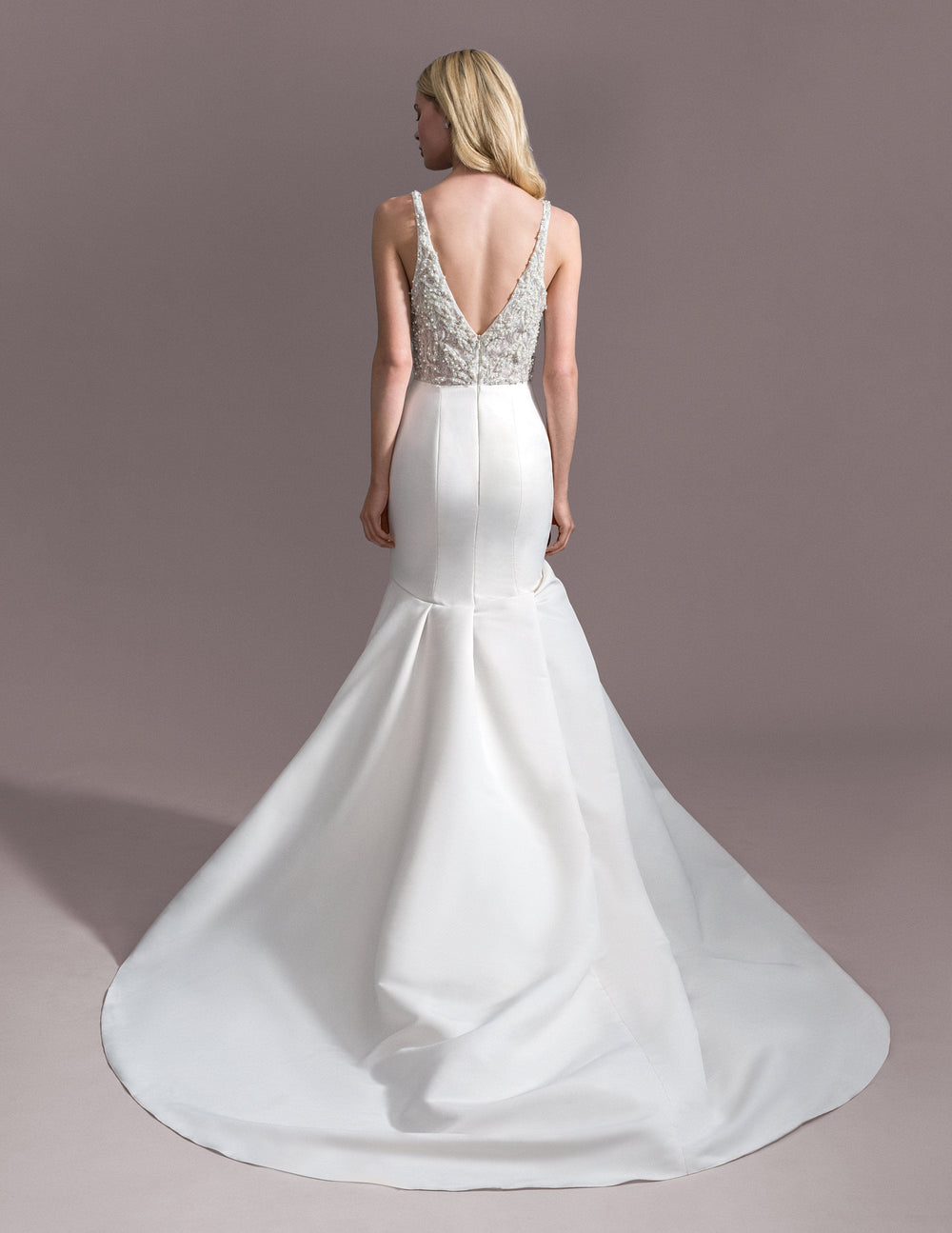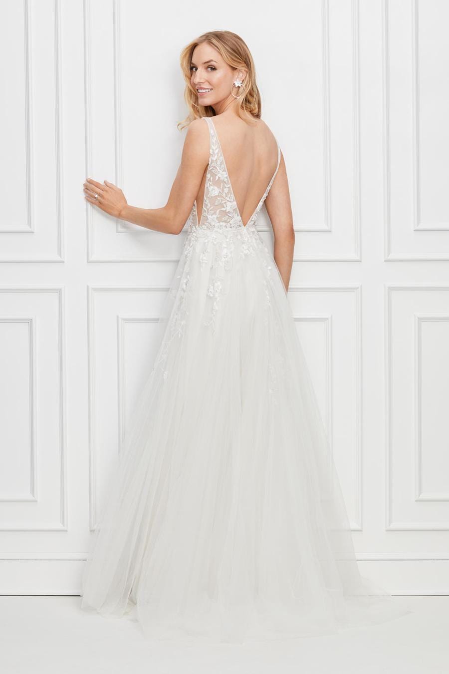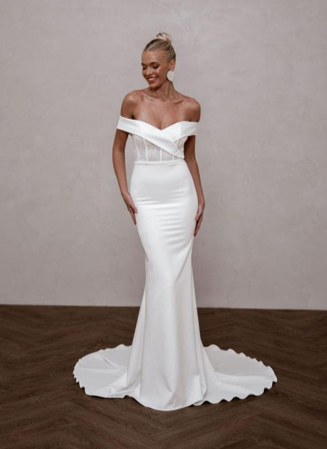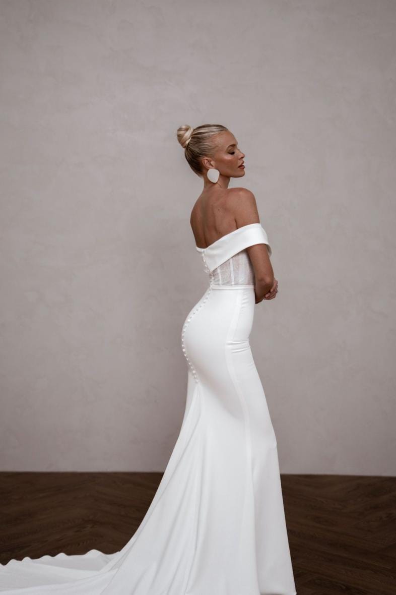 While our samples have been well-maintained, some may show minor signs of being tried on, which our team will point out during your appointment. Most imperfections can be easily addressed during alterations.