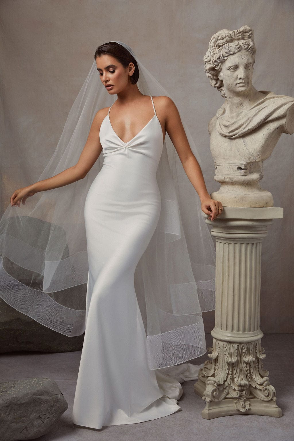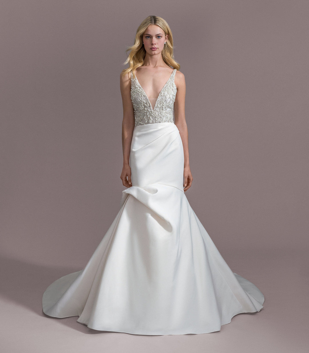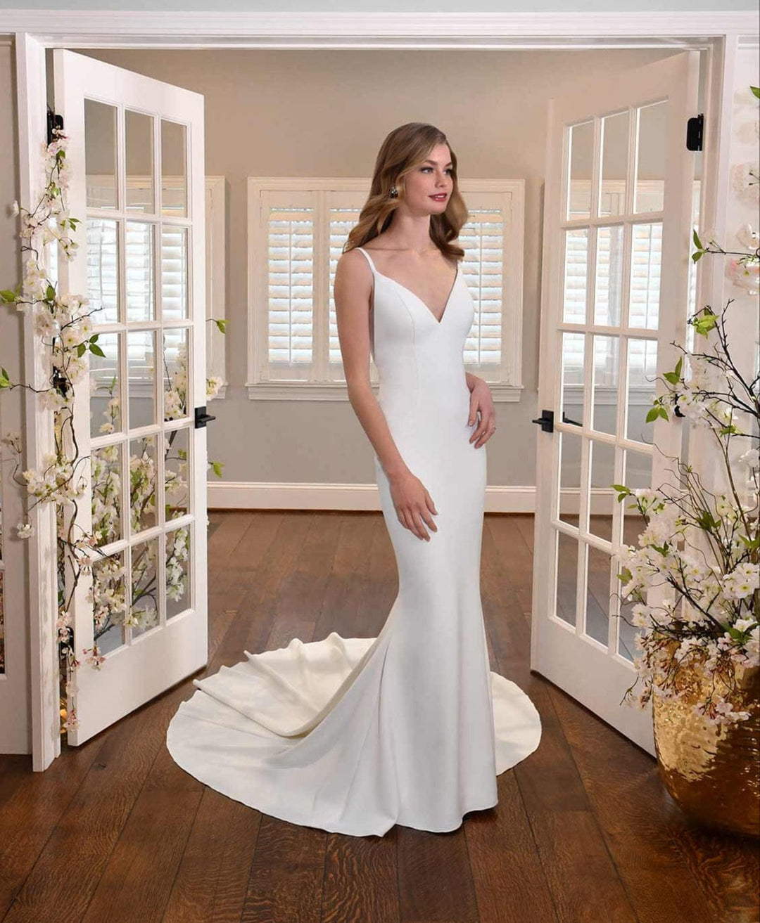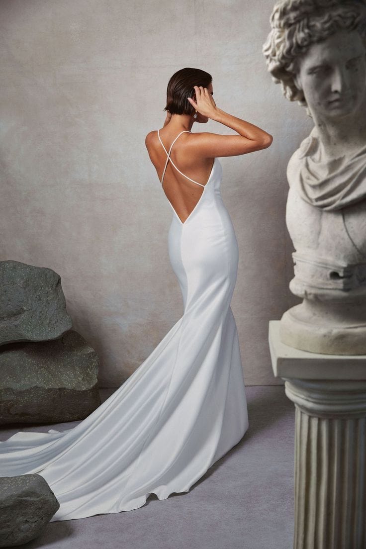 While our samples have been well-maintained, some may show minor signs of being tried on, which our team will point out during your appointment. Most imperfections can be easily addressed during alterations.