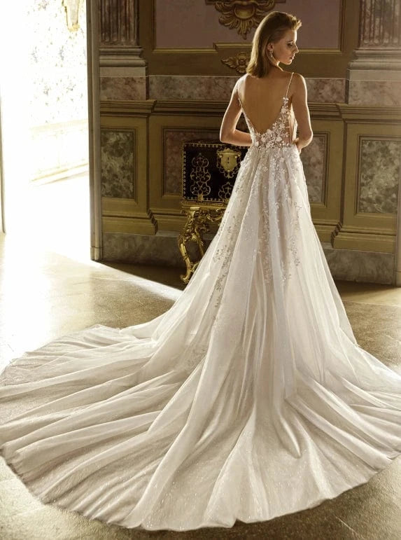 Ready to search for your perfect wedding dress? Browse our wedding dress sample sale online from the comfort of your home. Our detailed descriptions and multiple photos help you see exactly what you're purchasing. Feel free to email us with questions about fit, alterations, or how to style your gown.