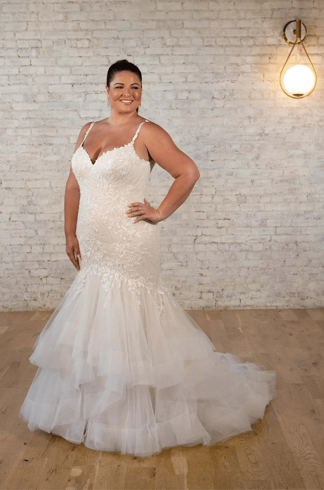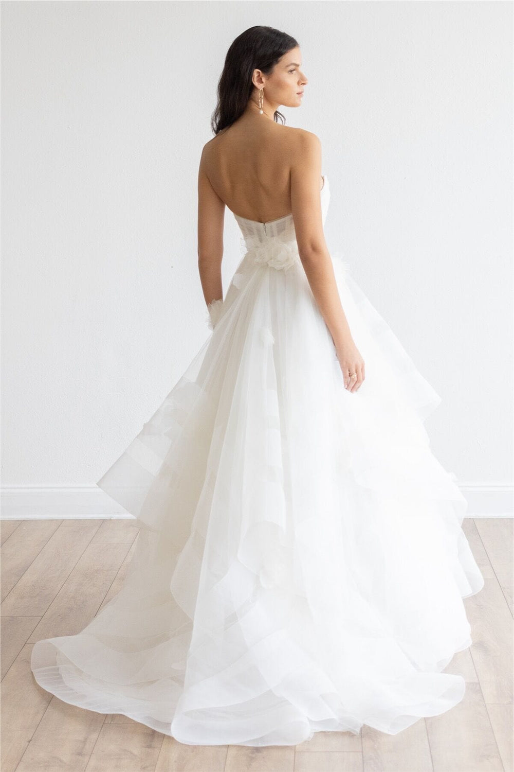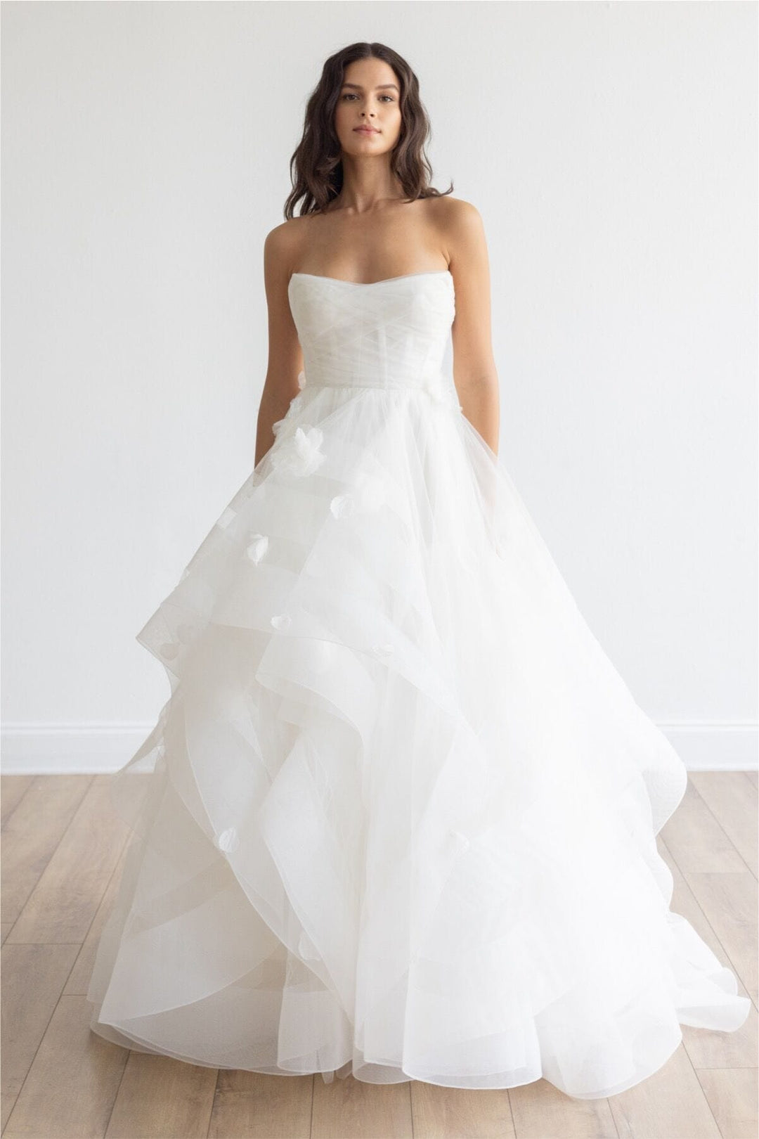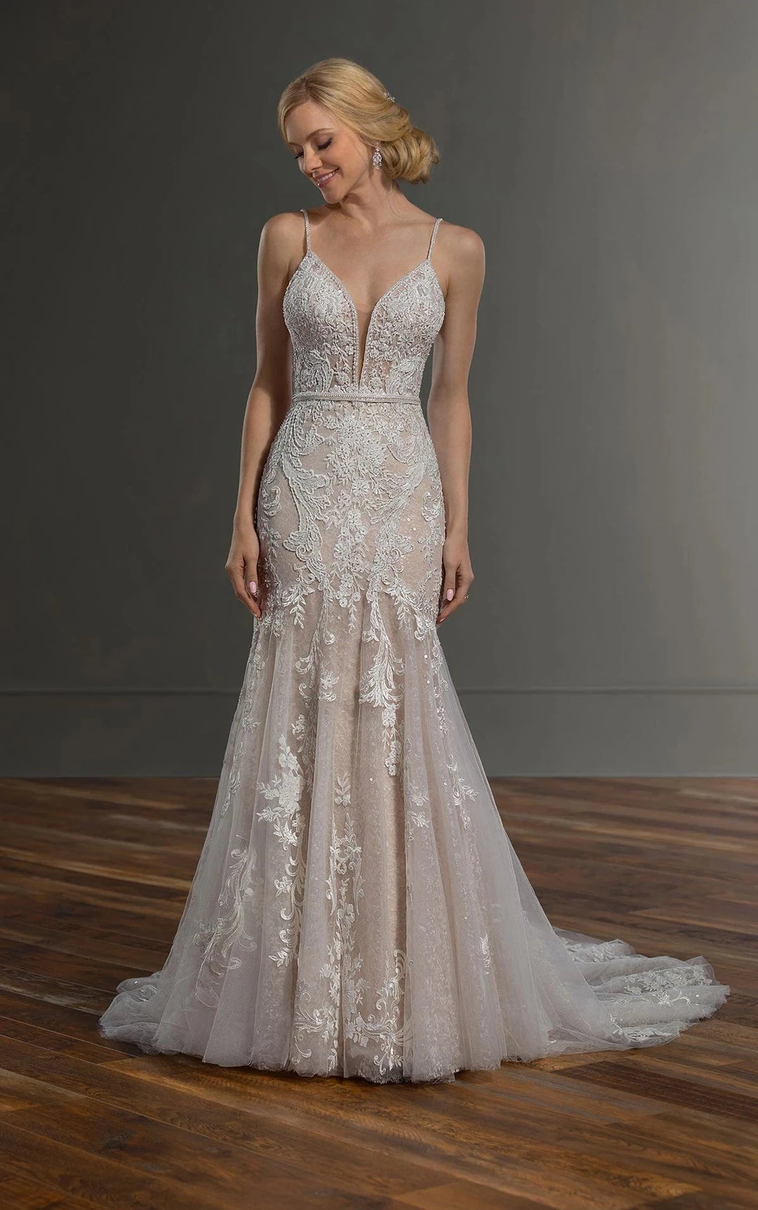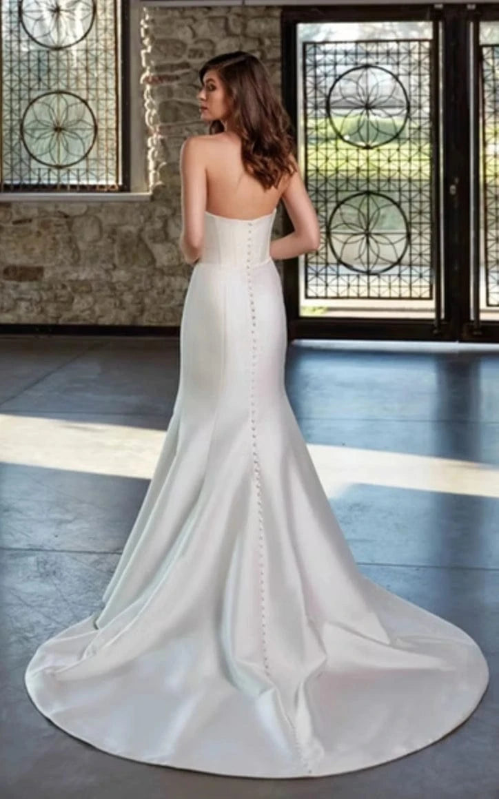 While our samples have been well-maintained, some may show minor signs of being tried on, which our team will point out during your appointment. Most imperfections can be easily addressed during alterations.