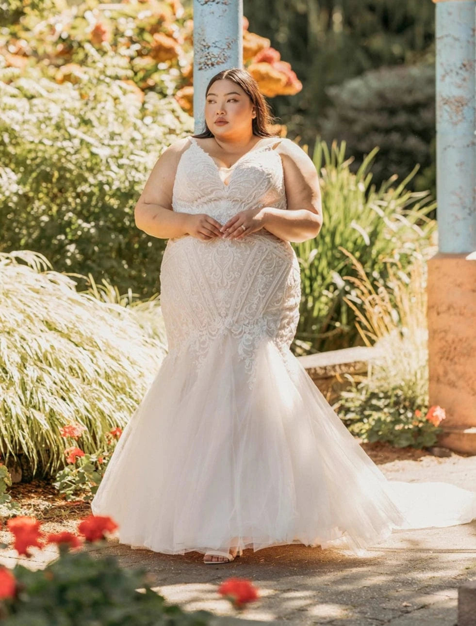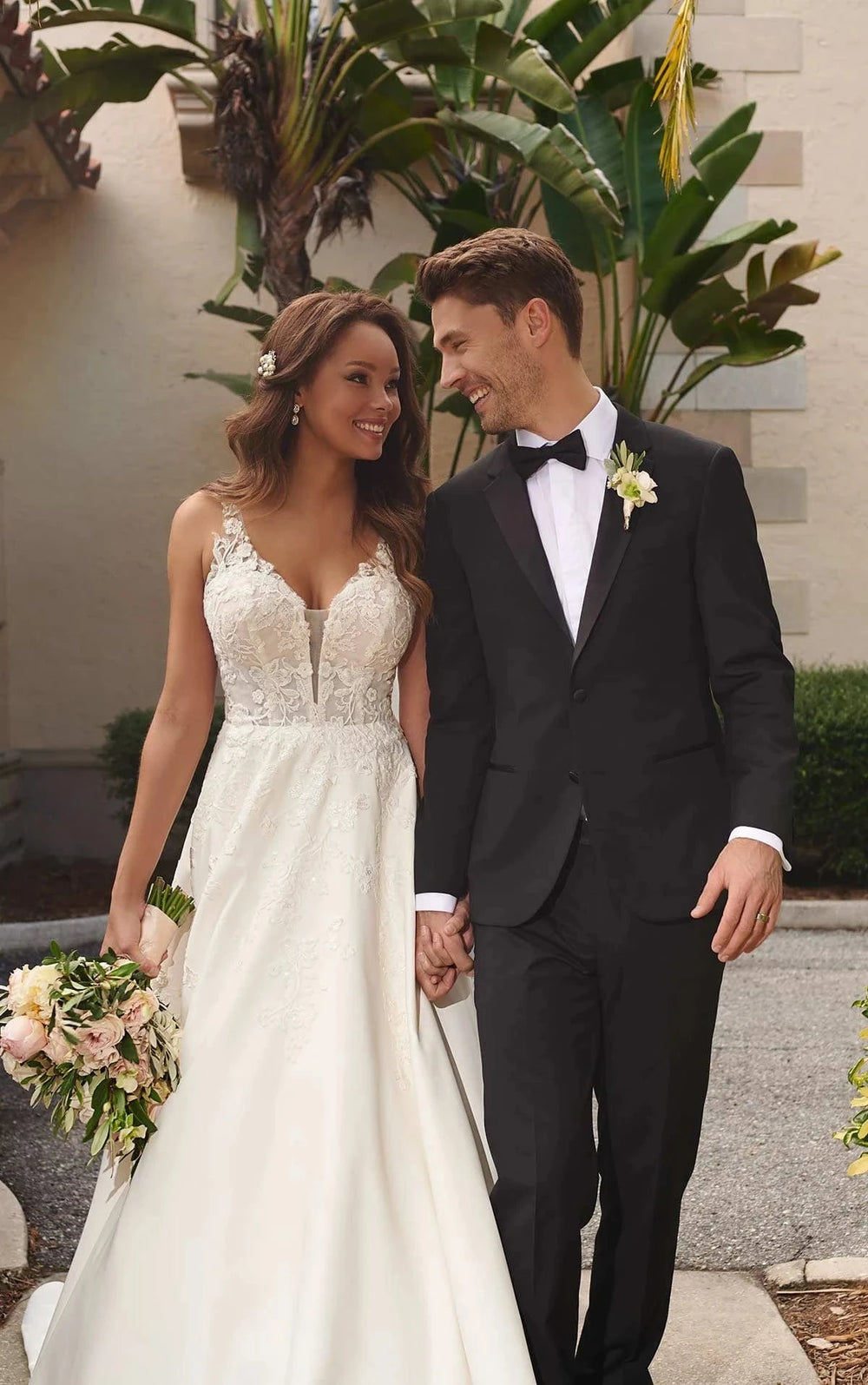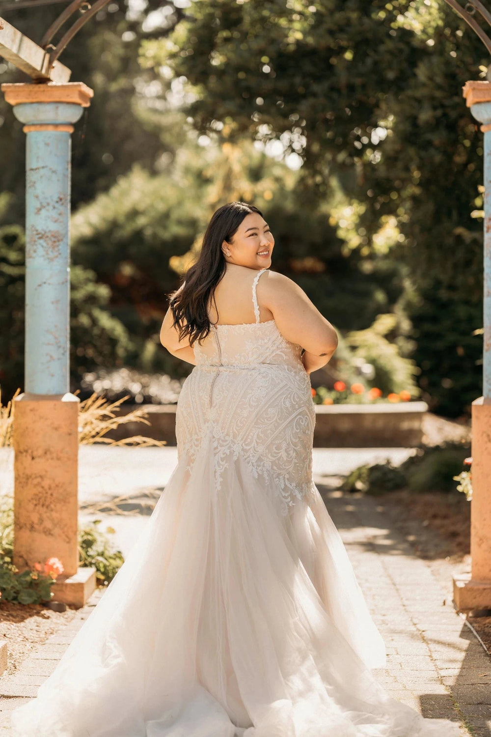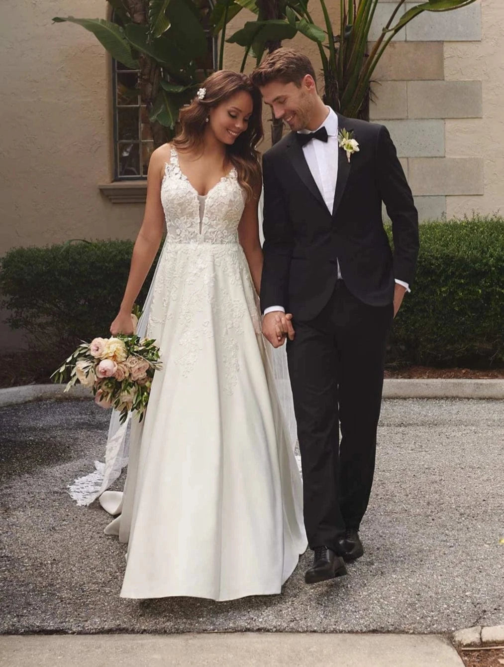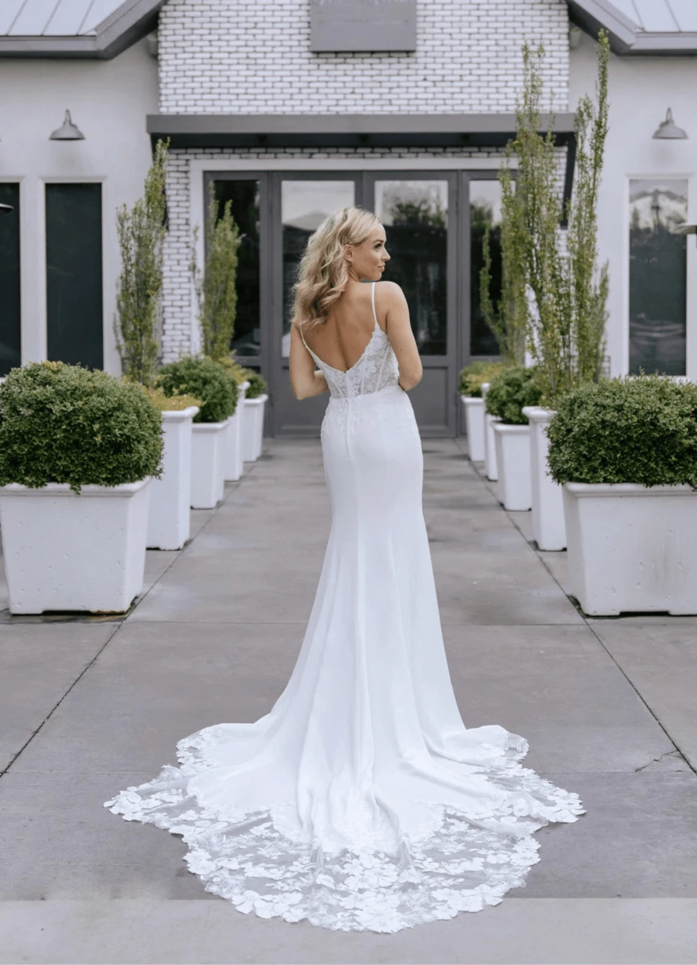 While our samples have been well-maintained, some may show minor signs of being tried on, which our team will point out during your appointment. Most imperfections can be easily addressed during alterations.