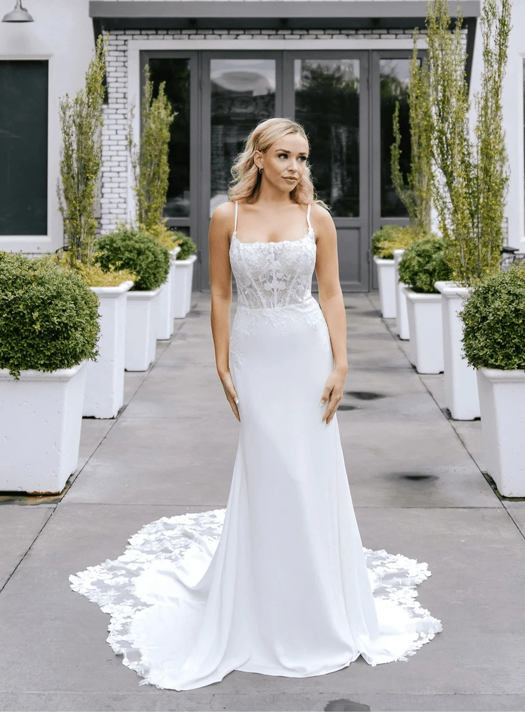 Our wedding dress sample sale features stunning gowns from top designers that have been tried on as samples in high end bridal boutiques. These bridal dress sample sale finds offer significant savings, while still providing the quality and style you deserve for your wedding day. Sample sale wedding dresses are perfect for brides with shorter timelines or those looking to maximize their budget without compromising on design. Sustainability is another benefit. When you say yes to a sample bridal gown, you're purchasing a gown that has already been made, instead of putting a completely new garment into production.