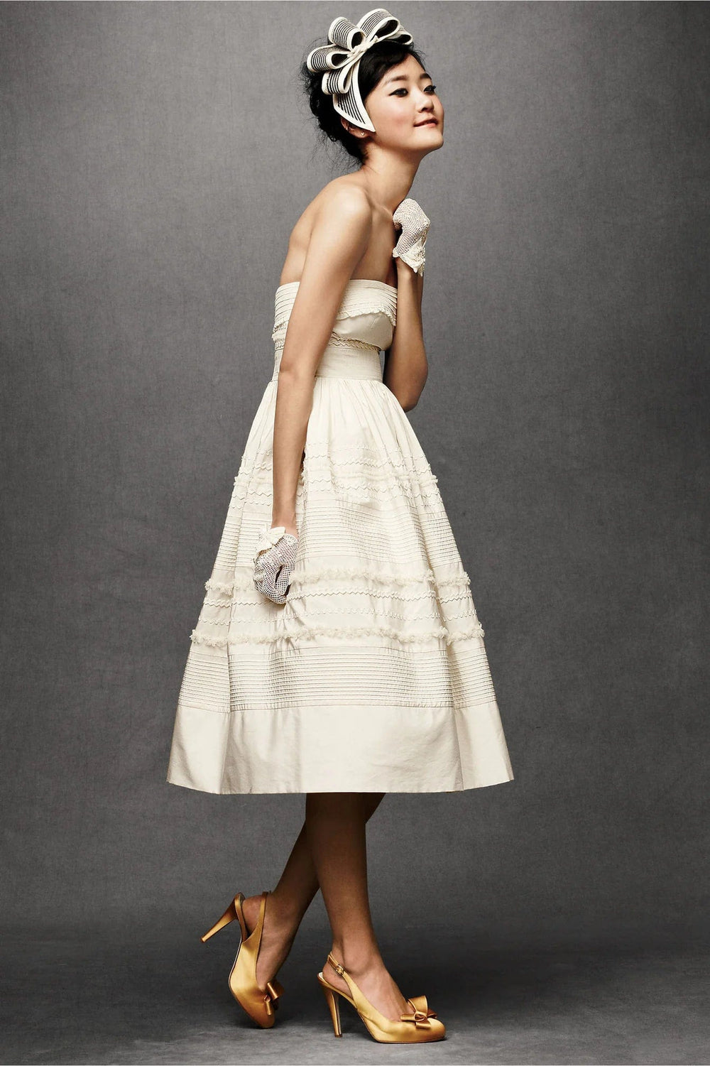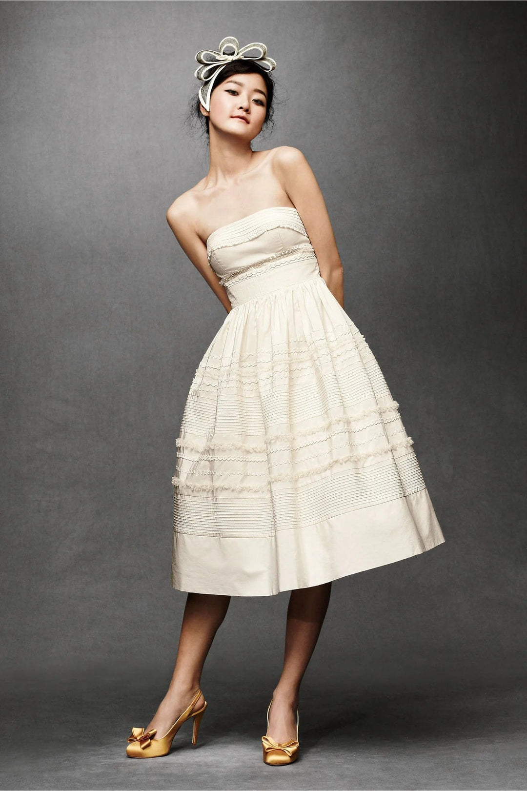 Picking out your short wedding dress should be as fun as your bachelorette party! Start by thinking about the vibe you're going for. Want something lacy and romantic? We've got it. Craving a sleek, modern look? Check! Dreaming of twirly tulle? You bet! Don't forget to consider the season and venue. A strapless number might be perfect for a summer garden party, while a long-sleeved lace dress could be just the ticket for a fall courthouse wedding.