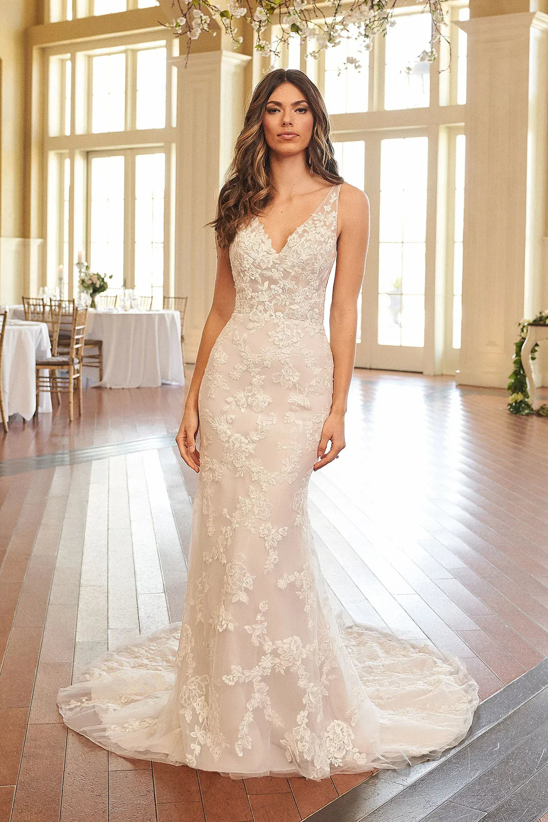 A V-neck wedding dress is always a yes — flattering, timeless, and effortlessly chic. Explore our collection of V-neck bridal gowns, featuring everything from romantic ballgowns to sleek fitted styles, all in stock and ready to take home today.
