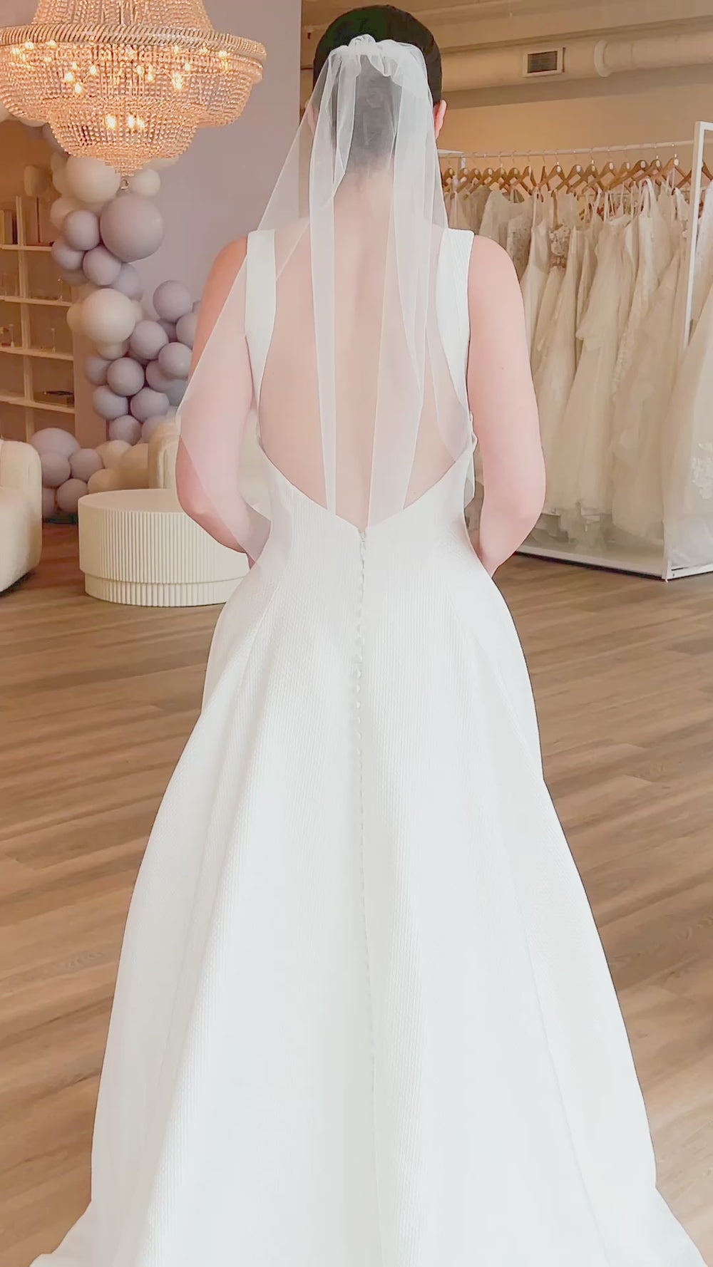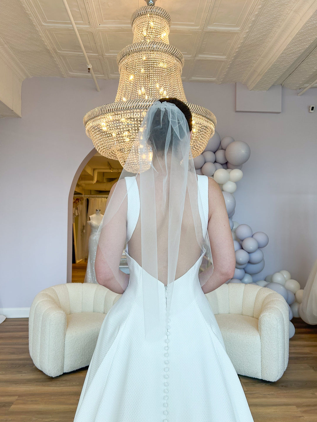We carry wedding veils in every length and style to match your wedding gown. Chapel veils extend just past your train, creating a classic bridal silhouette. Cathedral veils make a dramatic statement as you walk down the aisle, perfect for formal ceremonies. Fingertip veils offer versatility and work beautifully with most gown styles. For a vintage touch, add a blusher veil that covers your face during the ceremony.