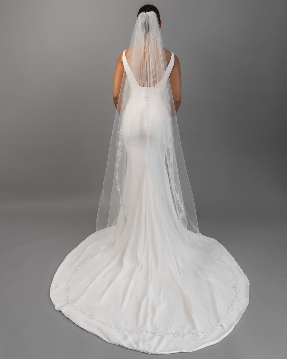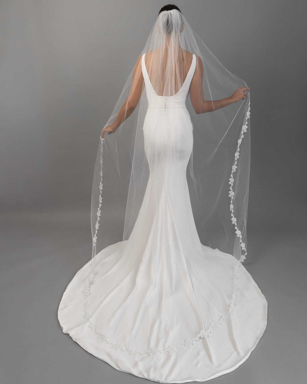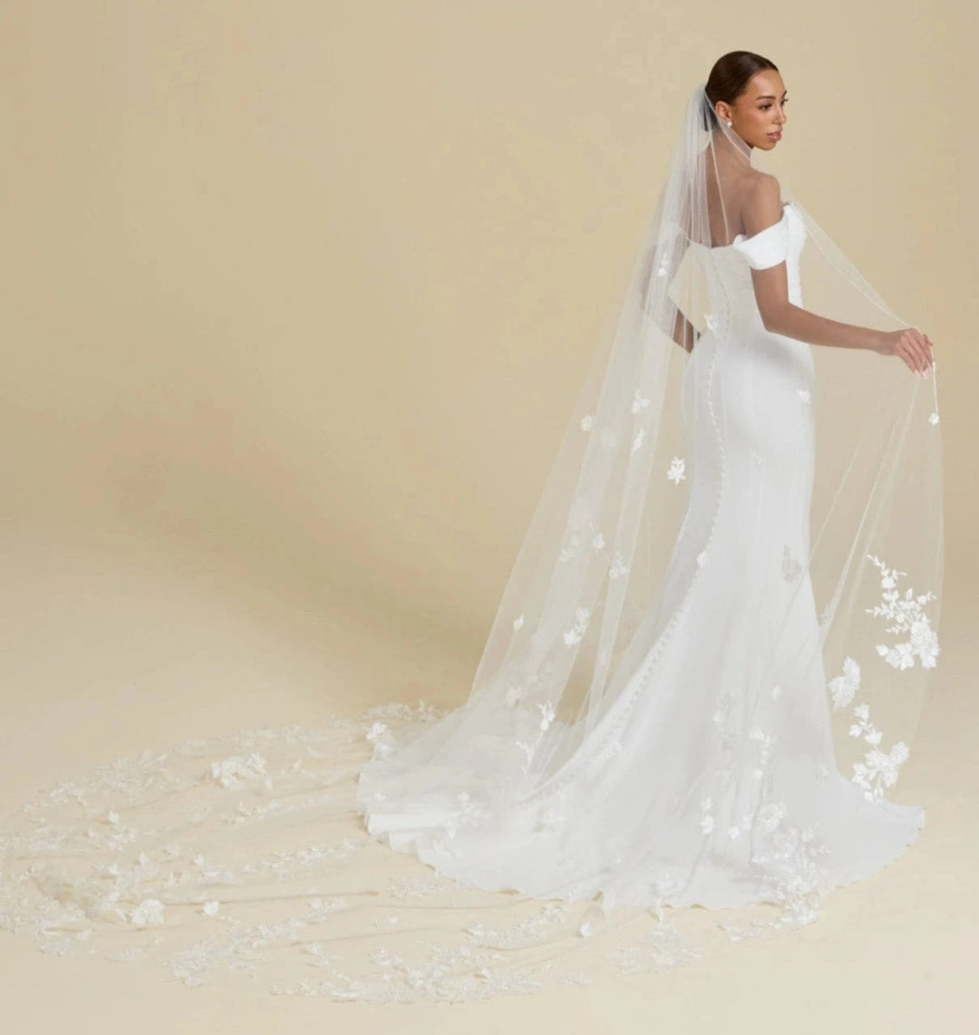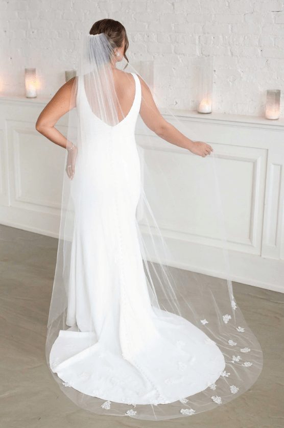 For brides choosing ball gown silhouettes, cathedral veils create stunning drama, while sheath dresses look elegant with fingertip or chapel length veils.