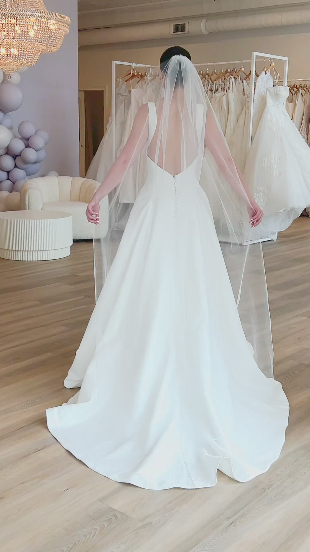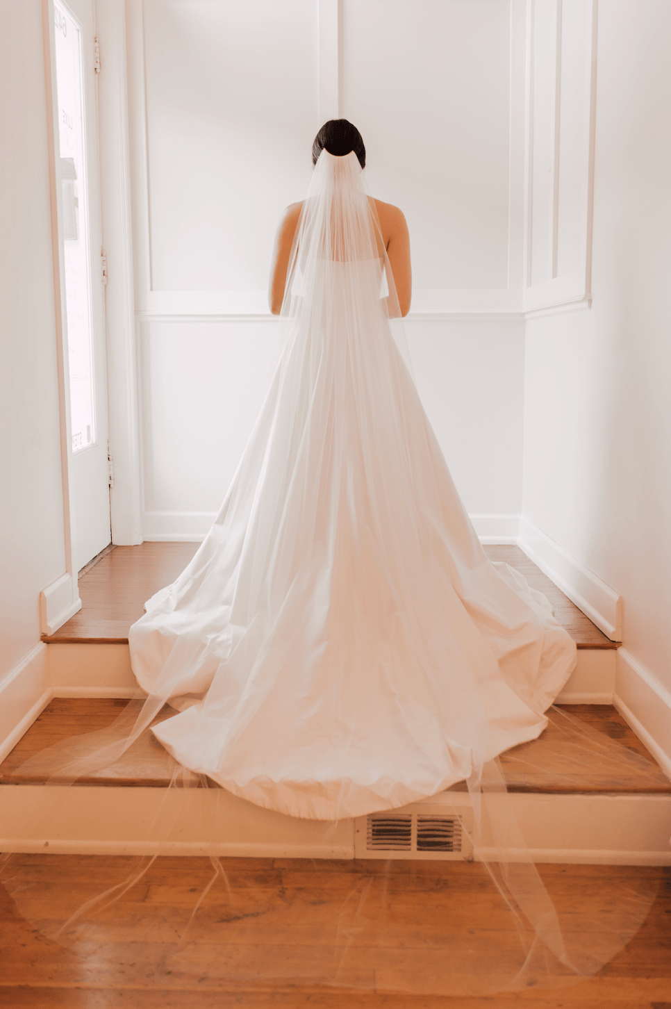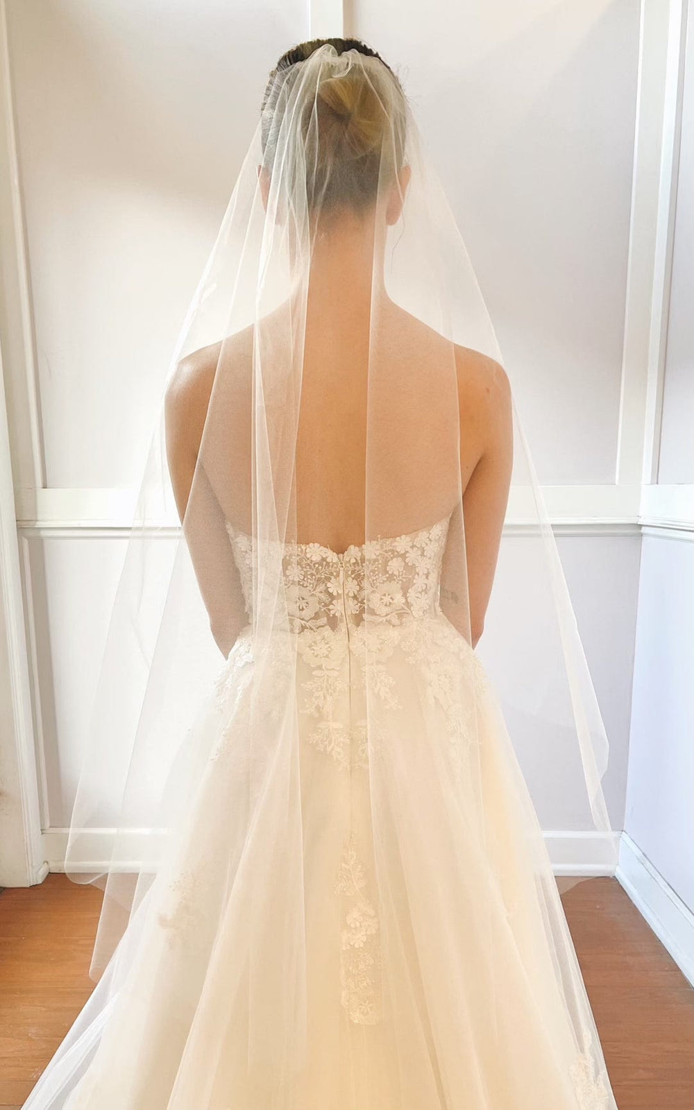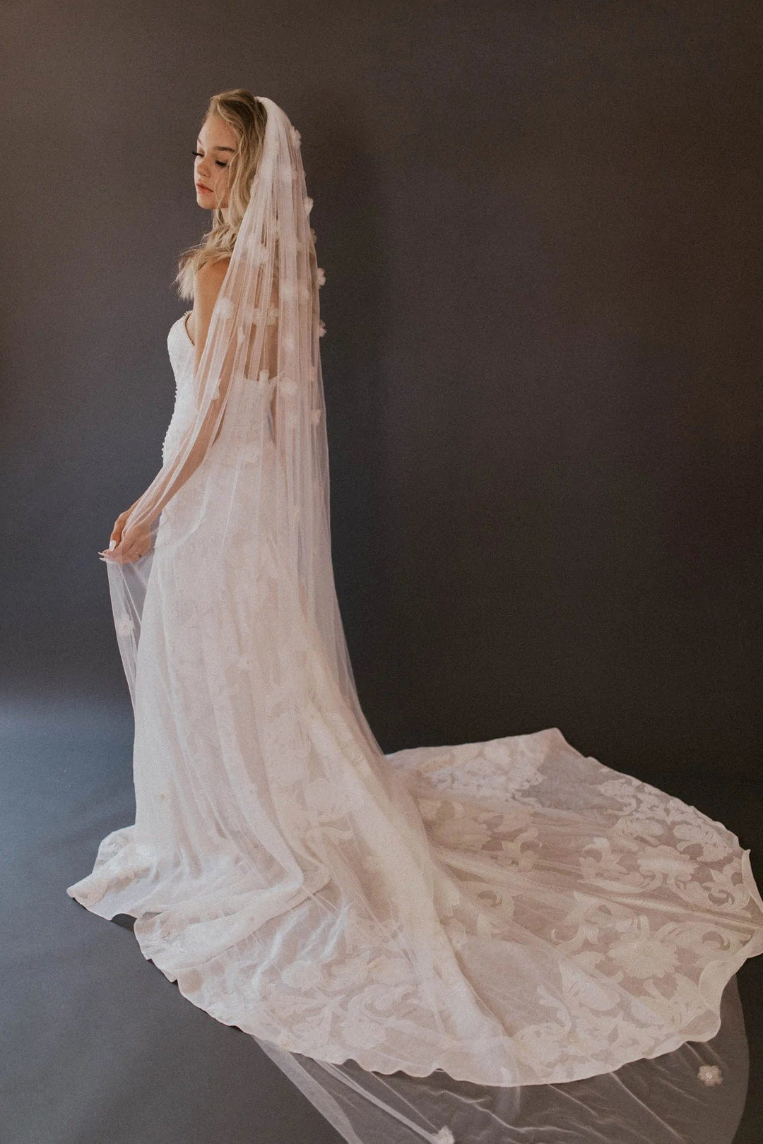 For brides choosing ball gown silhouettes, cathedral veils create stunning drama, while sheath dresses look elegant with fingertip or chapel length veils.