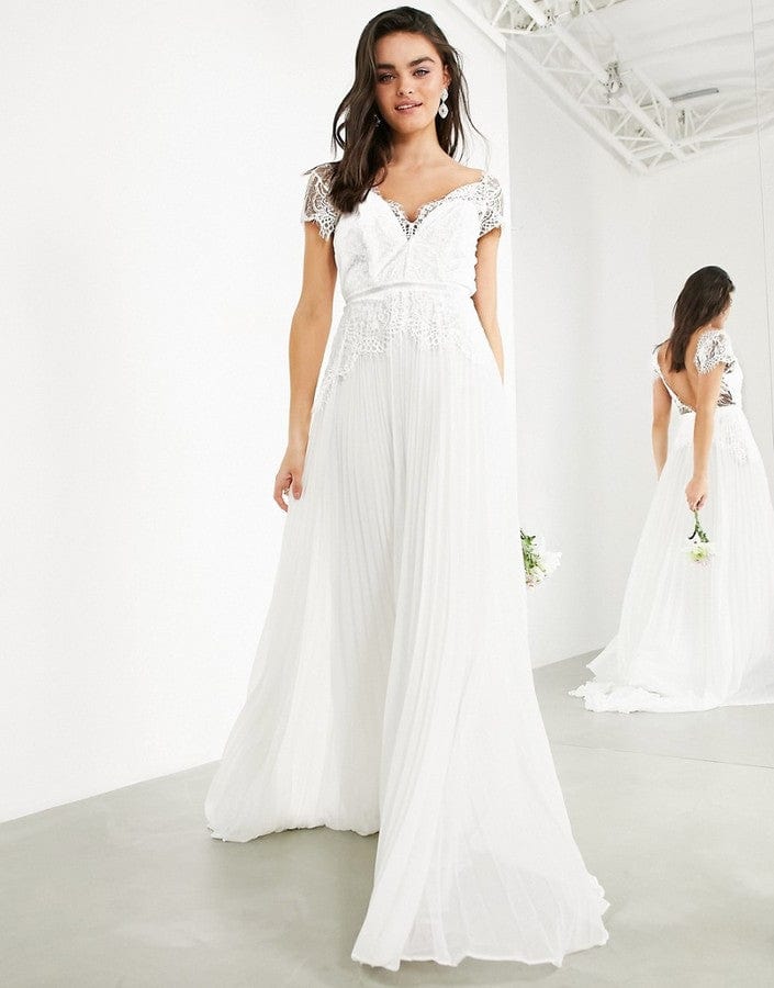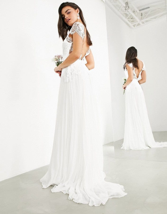 But it's not just about the neckline—our affordable wedding dresses are crafted from high-quality fabrics that look and feel like a million bucks (without costing anywhere near that!). Think lace, organza, tulle, satin, or chiffon. These materials create stunning gowns that drape beautifully and feel luxurious against your skin. And if you’re wondering about sizes, you’ll find wedding gowns in a range of sizes to flatter every figure, from petite to plus