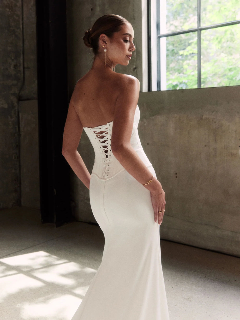 Our curated collection features bridal designers including Essense of Australia, Milla Nova, Sarah Seven and many more amazing options. We also offer Luxe Privée, our private label brand designed specifically for the Luxe Redux Bride, featuring on-trend unique styles, inclusive size options, and accessible price points. Whether you're looking for a specific silhouette that flatters your body type or exploring different styles, our intimate shopping experience ensures you'll find something perfect.