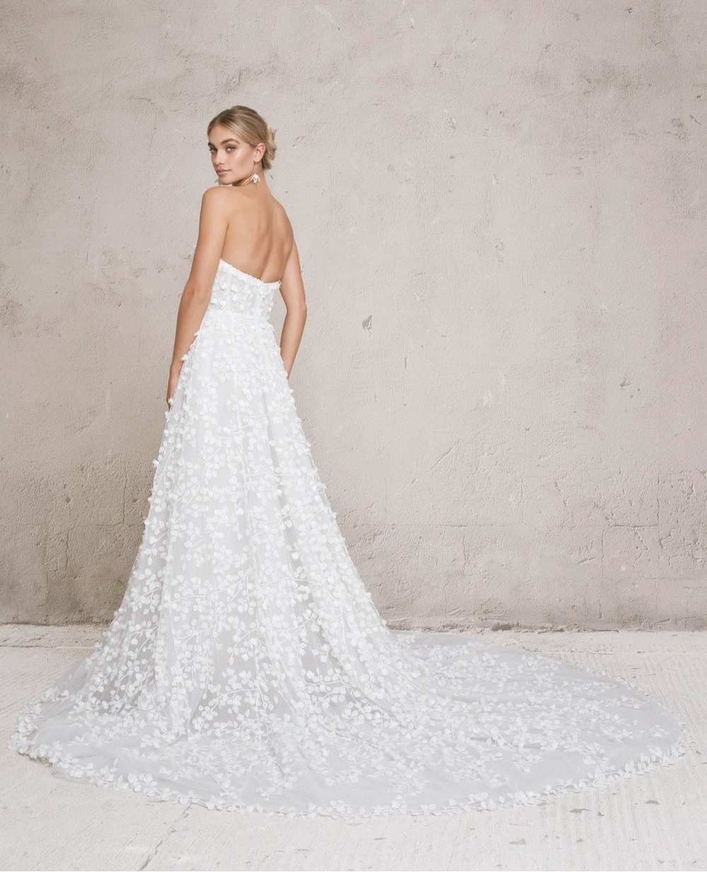 Please do not be disappointed if the dress does not fit you perfectly. If it did, that would be rare! Even when a bride special orders a gown from a traditional boutique, alterations are necessary. Typical alterations on a gown include: bust cups, a hem, a bustle and the side seams slimmed in the bodice. When using an experienced seamstress, most gowns can be take in 2 - 3 sizes without damaging the integrity of the gown. If you have specific questions about the fit of your gown, don't hesitate to send us photos via email/text or schedule a FaceTime consultation.