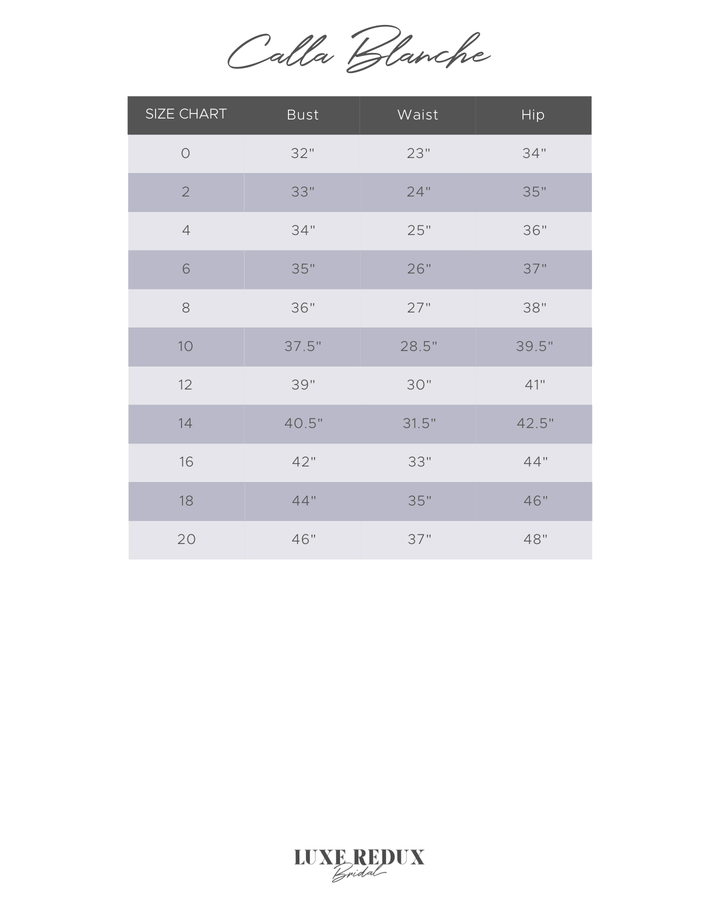 We encourage you to reach out to our stylists, or as we like to call them, your personal #hypesquad, to discuss measurements prior to placing your order. It’s easy! Email us at stylist@luxereduxbridal.com | Text us at 614.714.3818