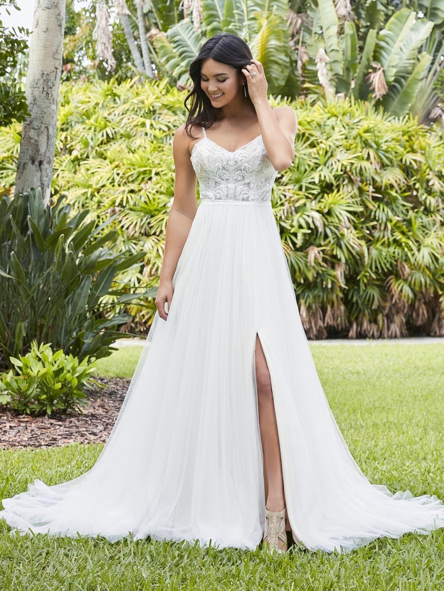 Christina Wu 22114 is a gorgeous tulle A-line wedding dress featuring an airy skirt with a slit! This gown comes to us in great condition from a designer boutique. Christina Wu 22114 is Ivory in color and a size 14.