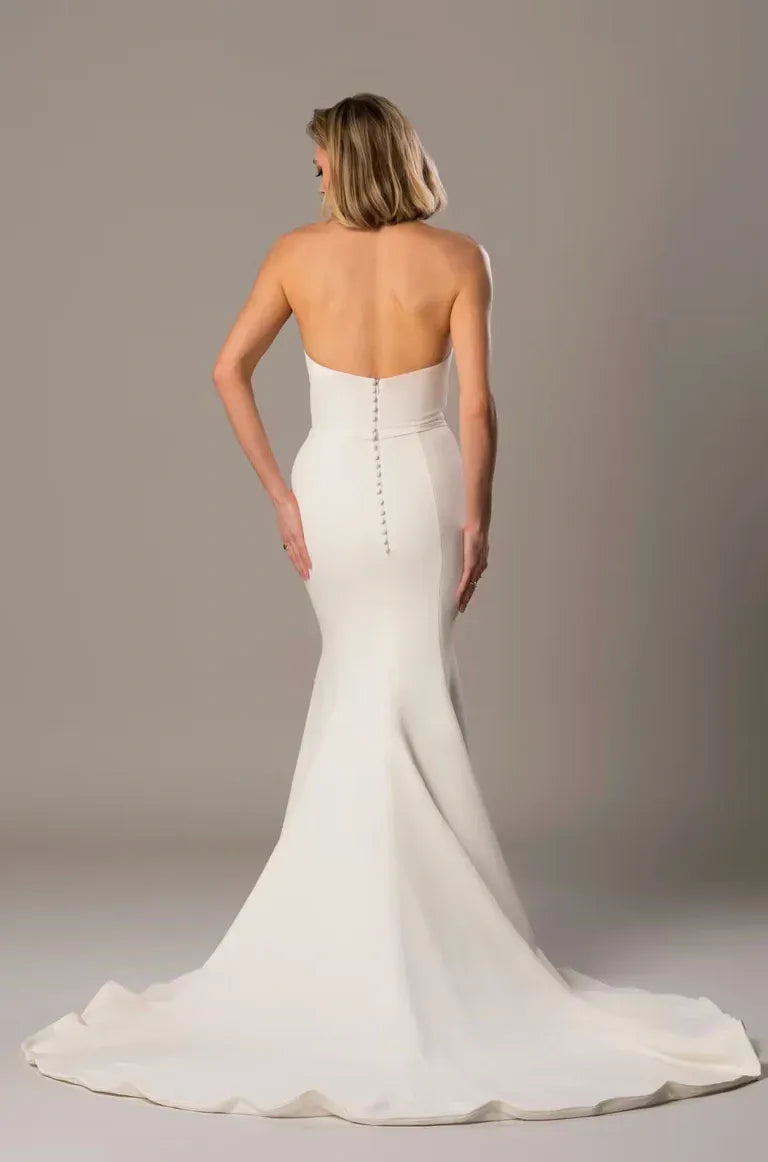 Our gowns haven't been worn down the aisle, but they may have been tried on by brides who chose a different dress. We hold our samples to high standards, though some may need a little extra love, like a loose button or a broken zipper - small fixes that a skilled seamstress can easily handle. Those minor imperfections mean major discounts! While we do our best to keep gowns in pristine condition, wear and tear can occur during try on. If you're interested in this style, please do not hesitate to text or email us for more details or additional photos before saying YES!