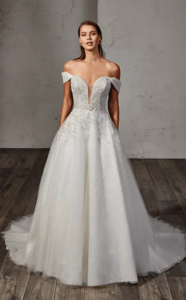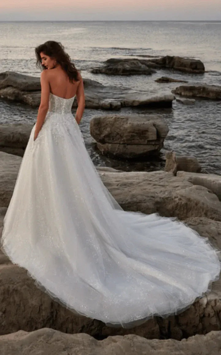 Our gowns haven't been worn down the aisle, but they may have been tried on by brides who chose a different dress. We hold our samples to high standards, though some may need a little extra love, like a loose button or a broken zipper - small fixes that a skilled seamstress can easily handle. Those minor imperfections mean major discounts! While we do our best to keep gowns in pristine condition, wear and tear can occur during try on. If you're interested in this style, please do not hesitate to text or email us for more details or additional photos before saying YES!
