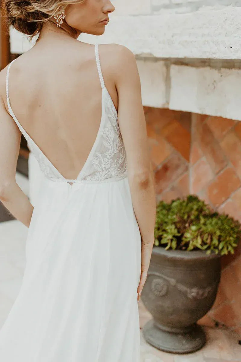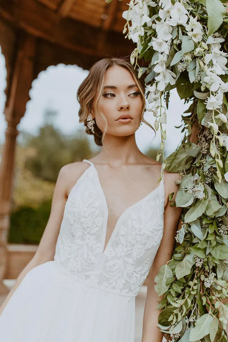 Our gowns haven't been worn down the aisle, but they may have been tried on by brides who chose a different dress. We hold our samples to high standards, though some may need a little extra love, like a loose button or a broken zipper - small fixes that a skilled seamstress can easily handle. Those minor imperfections mean major discounts! While we do our best to keep gowns in pristine condition, wear and tear can occur during try on. If you're interested in this style, please do not hesitate to text or email us for more details or additional photos before saying YES!
