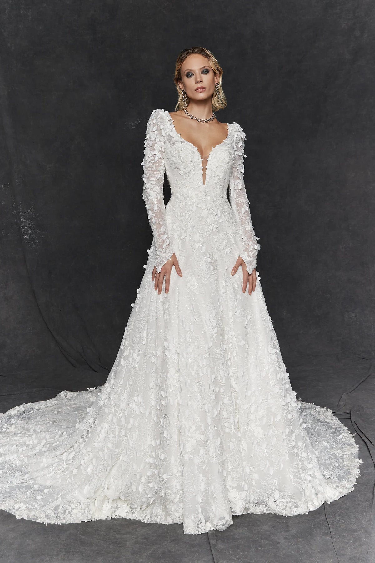 Justin Alexander Cypress 99261 is a picture-worthy tulle A-line wedding dress showcasing three-dimensional florals throughout! This gown comes to us in great condition from a designer boutique. Justin Alexander Cypress 99261 is Ivory/Ivory/Latte in color and a size 10.
