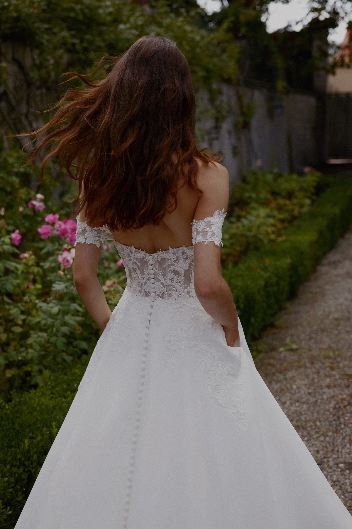 Our gowns haven't been worn down the aisle, but they may have been tried on by brides who chose a different dress. We hold our samples to high standards, though some may need a little extra love, like a loose button or a broken zipper - small fixes that a skilled seamstress can easily handle. Those minor imperfections mean major discounts! While we do our best to keep gowns in pristine condition, wear and tear can occur during try on. If you're interested in this style, please do not hesitate to text or email us for more details or additional photos before saying YES!