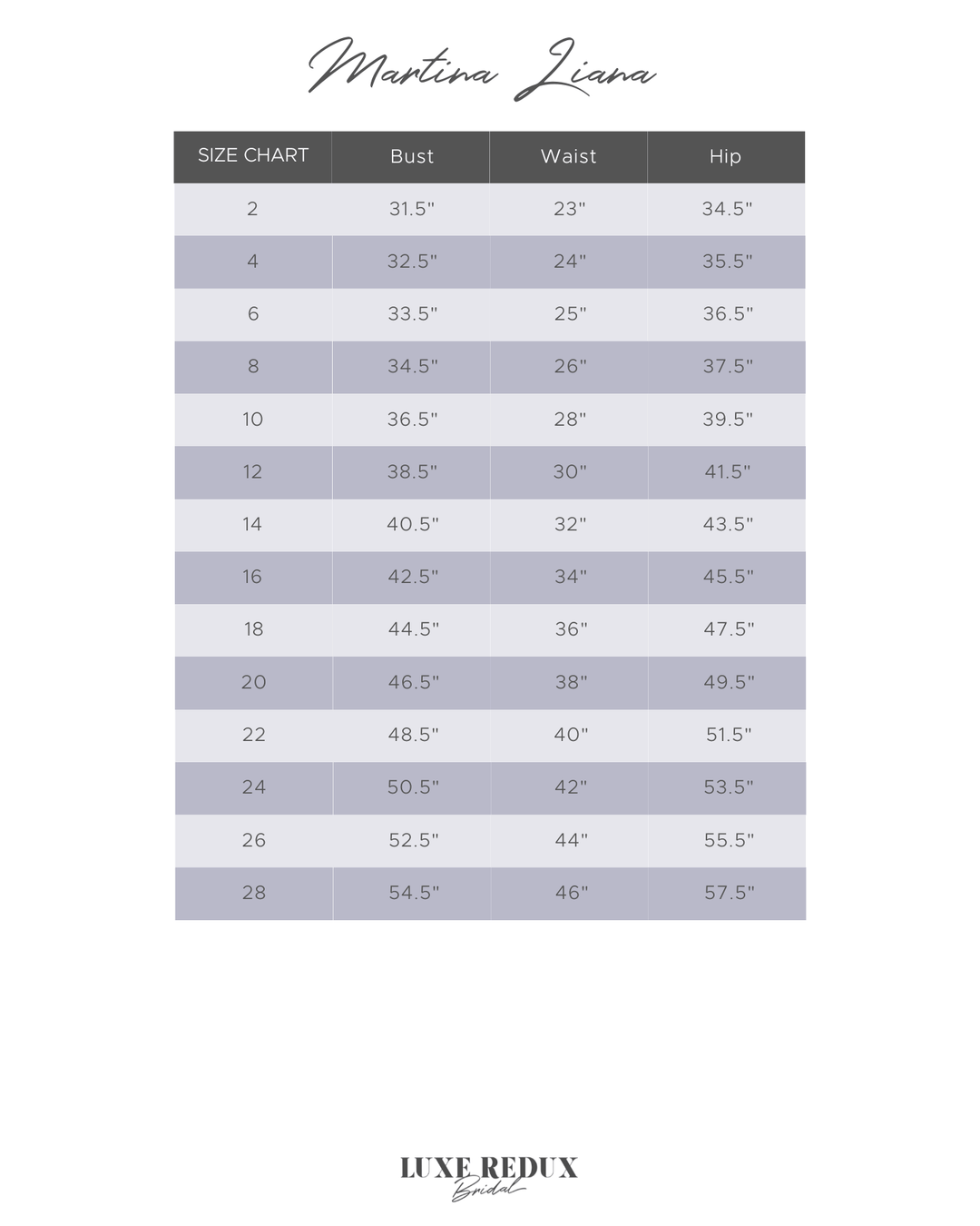 We encourage you to reach out to our stylists, or as we like to call them, your personal #hypesquad, to discuss measurements prior to placing your order. It’s easy! Email us at stylist@luxereduxbridal.com | Text us at 614.714.3818