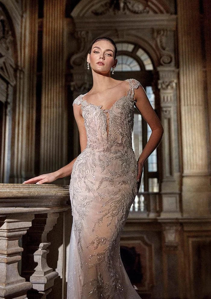 Pronovias Privee Blaze is a sultry tulle sheath wedding dress featuring sparkly lace appliqués throughout! This gown comes to us in great condition from a designer boutique. Pronovias Privee Blaze is Off White/Nude/Champagne in color and a size 12.