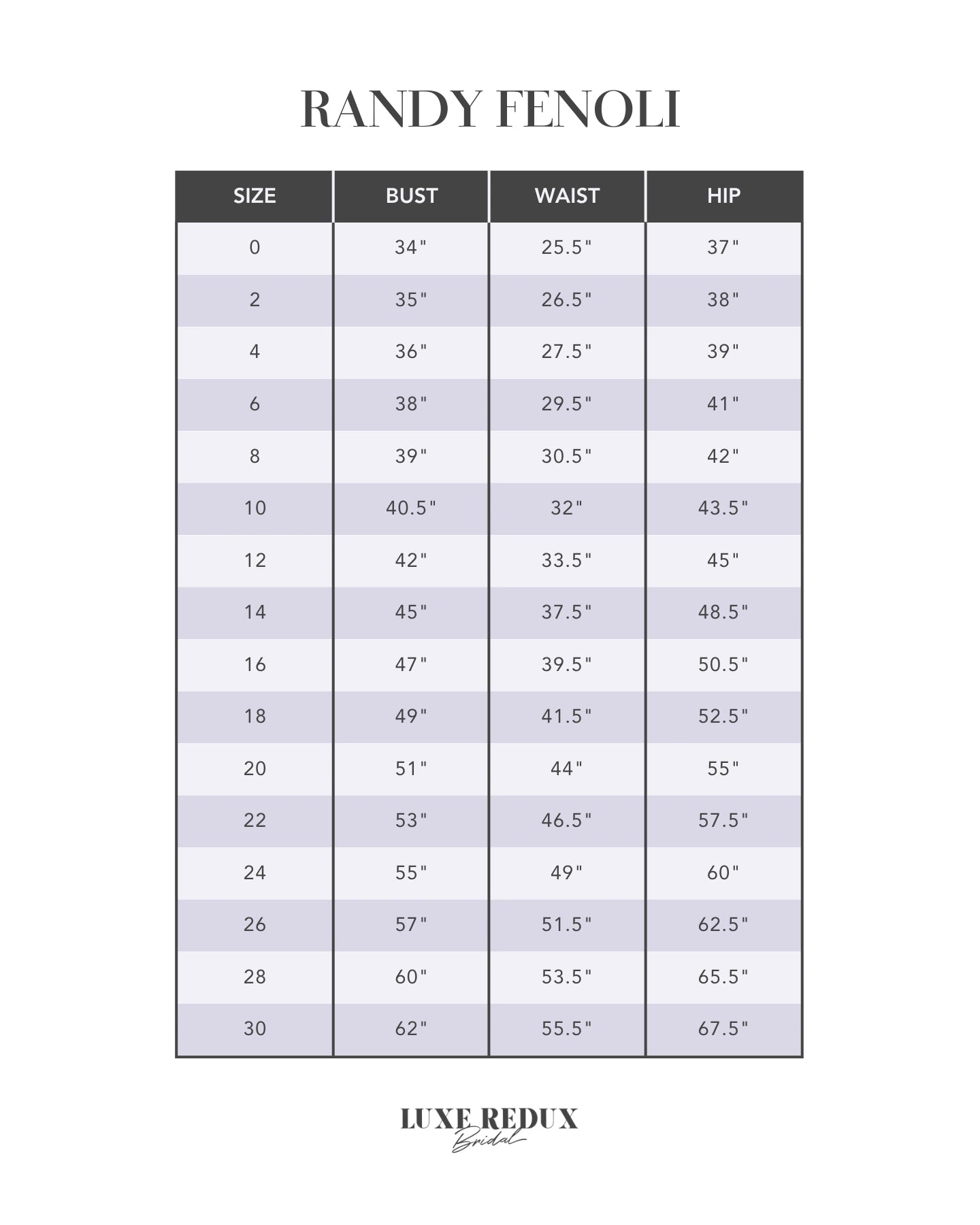 We encourage you to reach out to our stylists, or as we like to call them, your personal #hypesquad, to discuss measurements prior to placing your order. It’s easy! Email us at stylist@luxereduxbridal.com | Text us at 614.714.3818