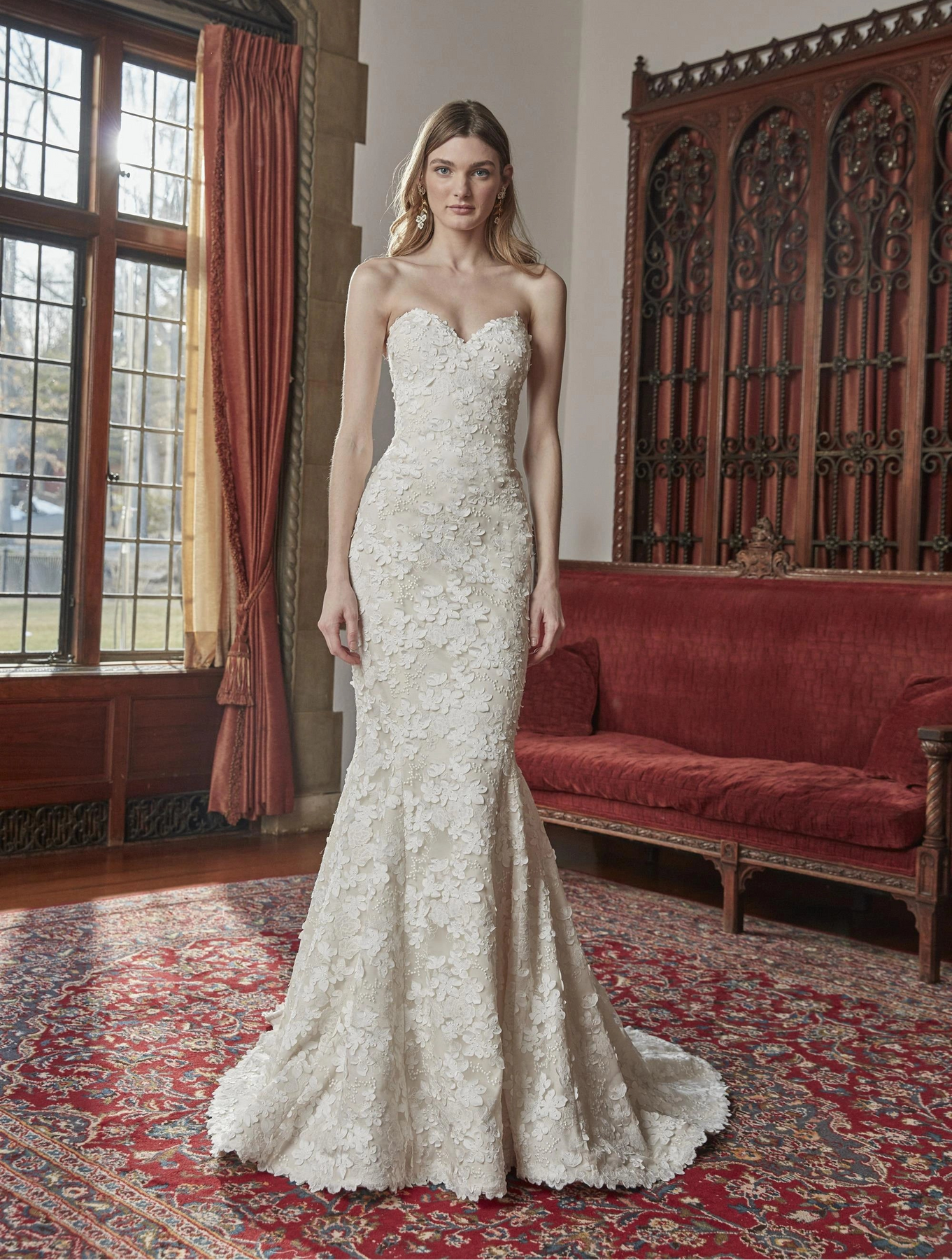 Your bridal gown size differs from your typical dress or pant size! We recommend ordering a sample 2-3 sizes larger than the size you wear in street clothing. For example, if you typically wear a size 12, your bridal size will most likely be a size 16 - 18, depending on the fit + designer. Please note, every designer runs different!