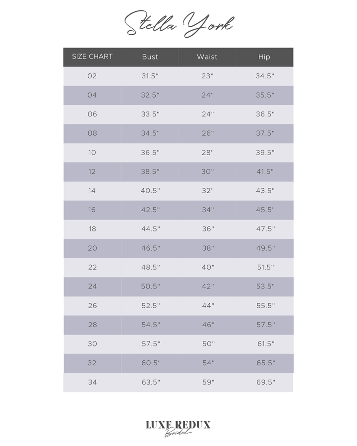 We encourage you to reach out to our stylists, or as we like to call them, your personal #hypesquad, to discuss measurements prior to placing your order. It’s easy! Email us at stylist@luxereduxbridal.com | Text us at 614.714.3818