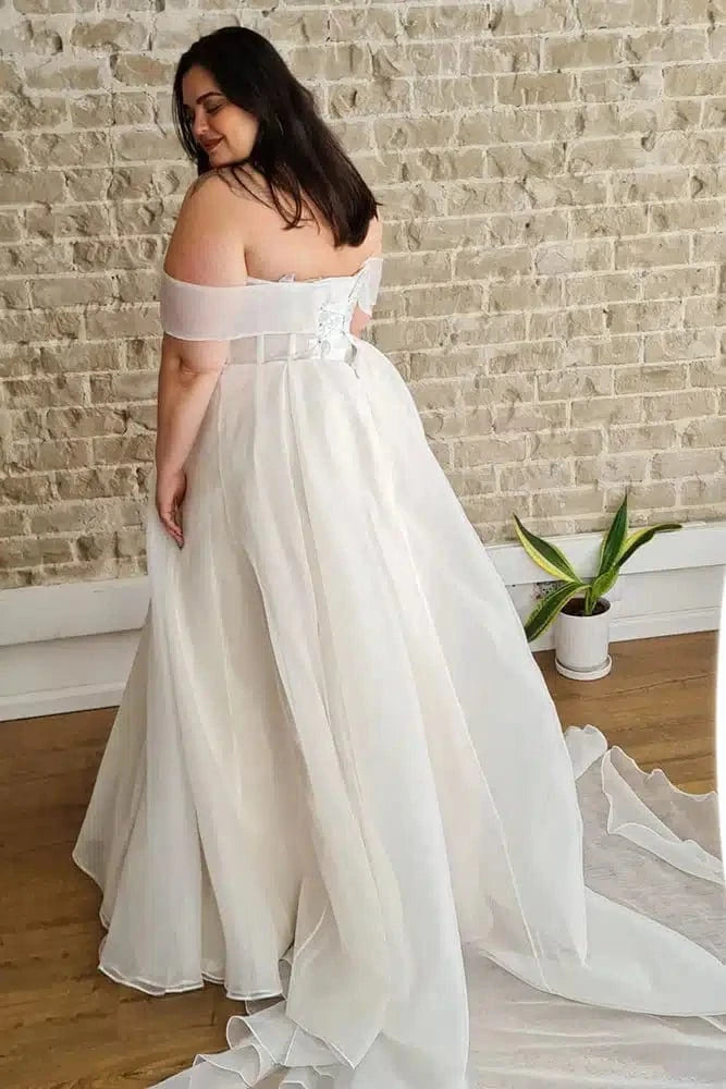Studio Levana Eva Young is a lovely organza ball gown featuring detachable off-the-shoulder puffed long sleeves! This gown comes to us in great condition from a designer boutique. Studio Levana Eva Young is Ivory/Ivory in color and a size 26.