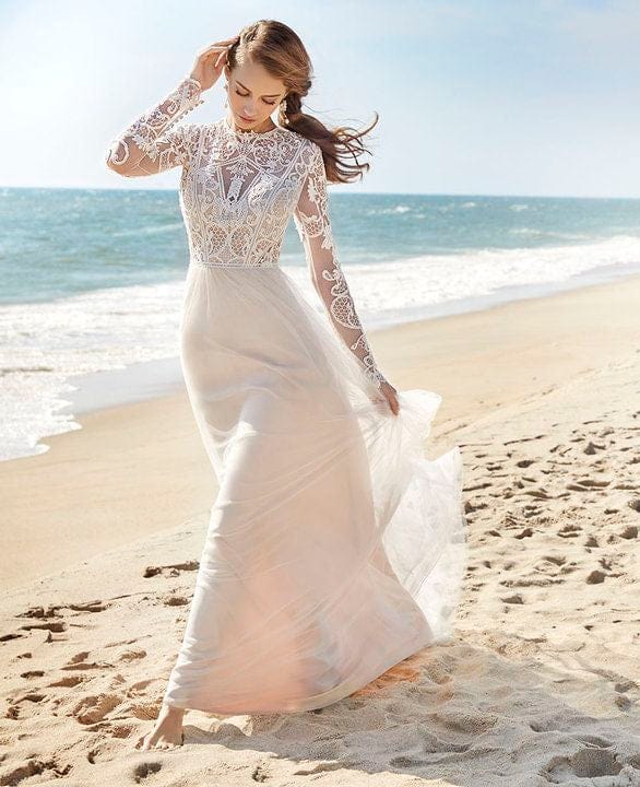 Your bridal gown size differs from your typical dress or pant size! We recommend ordering a sample 2-3 sizes larger than the size you wear in street clothing. For example, if you typically wear a size 12, your bridal size will most likely be a size 16 - 18, depending on the fit + designer. Please note, every designer runs different!